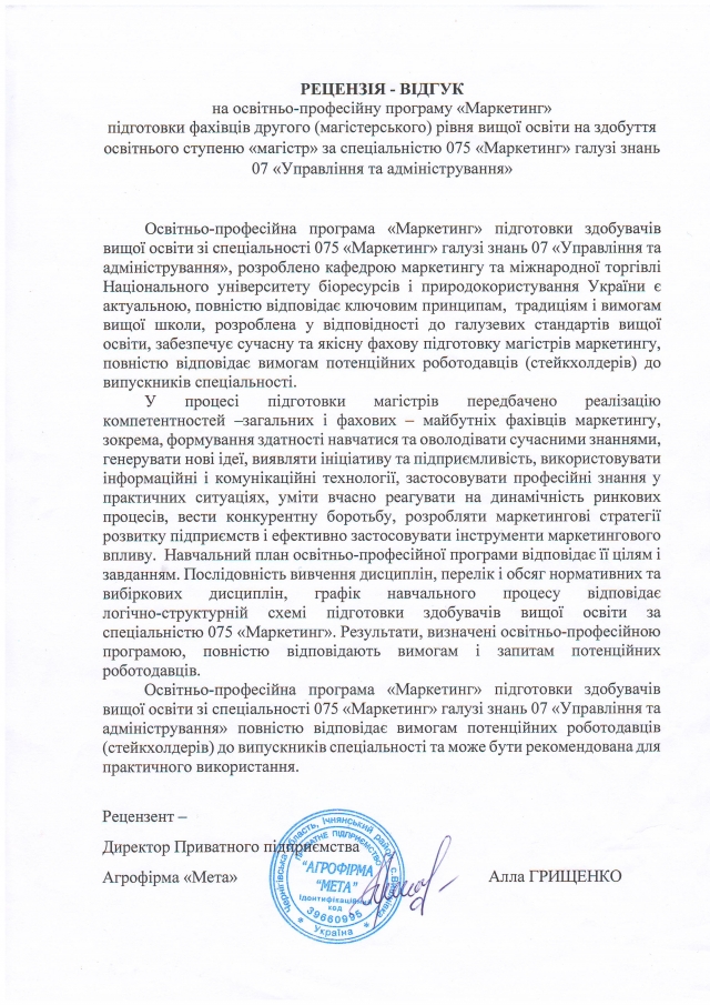 Анкета НПП для надання пропозицій з удосконалення ОП "Маркетинг"