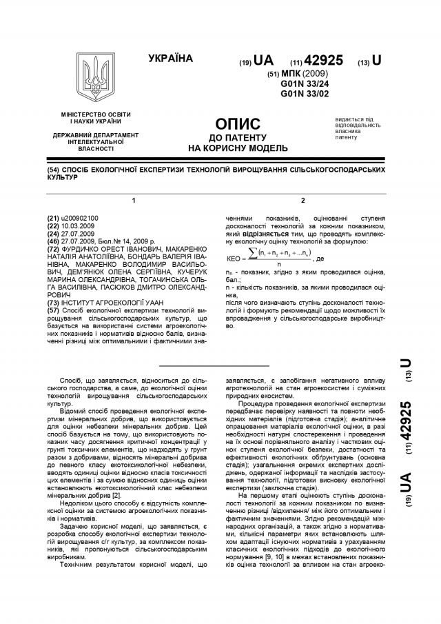 Патенти та свідоцтва Завідувач кафедри Клепко А.В. Професор Боголюбов В.М. Професор Гудков І.М. Доцент Піскунова Л.Е. Доцент Бондарь В.І., старший викладач Сальнікова А.В. Доцент Лазарєв М.М. Доцент Бондарь В.І.