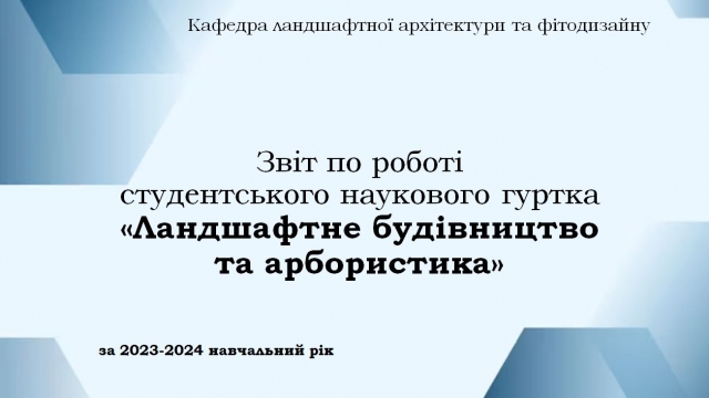 Студентський науковий гурток «Ландшафтне будівництво та арбористика»