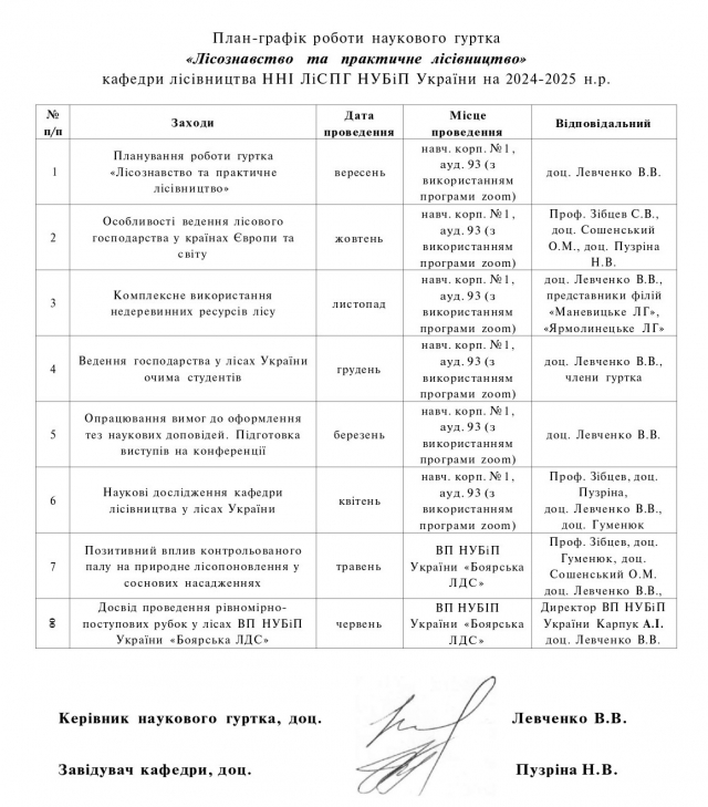 - Планування роботи наукового гуртка «Лісознавство та практичне лісівництво»
