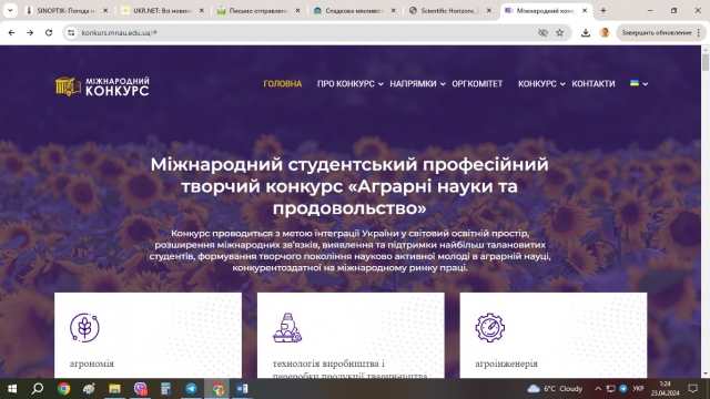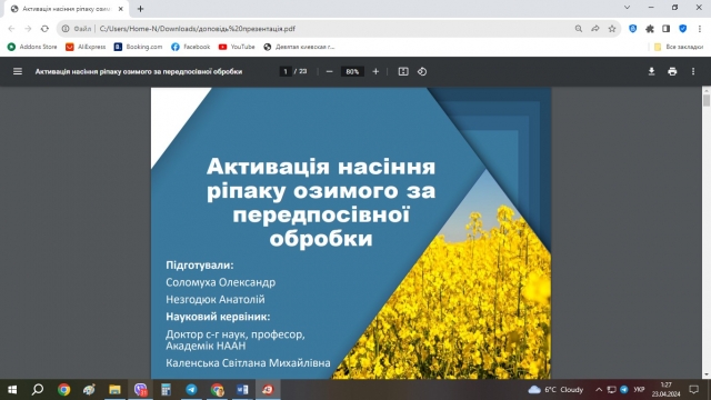 Член гуртка «Насіннєзнавець» СОЛОМУХА Олександр Сергійович, студент 2 курс 9 група АБФ в березні 2024 року підготував науковий проєкт «Activation of winter canola seed by pre-sowing treatment» за напрямком «Агрономія» до участі в Міжнародному студентському професійному творчому конкурсі «Аграрні науки та продовольство», який щорічно відбувається на базі Миколаївського національного аграрного університету за участі ряду Європейських країн.