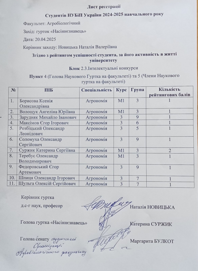 Керівник гуртка: професор, доктор сільськогосподарських наук НОВИЦЬКА Наталія Валеріївна