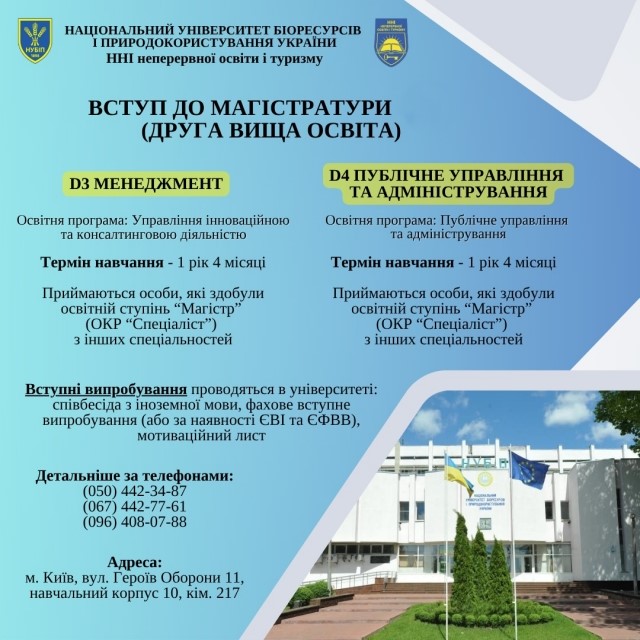 освітній ступінь «Магістр», денна та заочна форми навчання