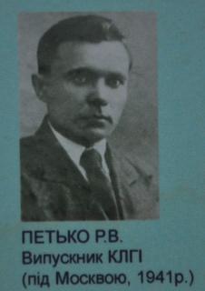На фото помилково зазначено Петько Р.В. Випускник Київського лісогосподарського інституту, загинув в 1941 р.