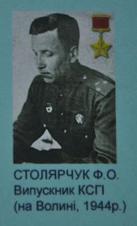 випускник Київського сільськогосподарського інституту, загинув у 1944 р. Гвардії полковник, Герой Радянського Союзу.
