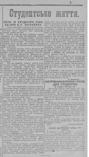 1924 рік. Студентське життя (вирізка з газети"Більшовик" (Київ), №270 від 27.11.1924 р.)