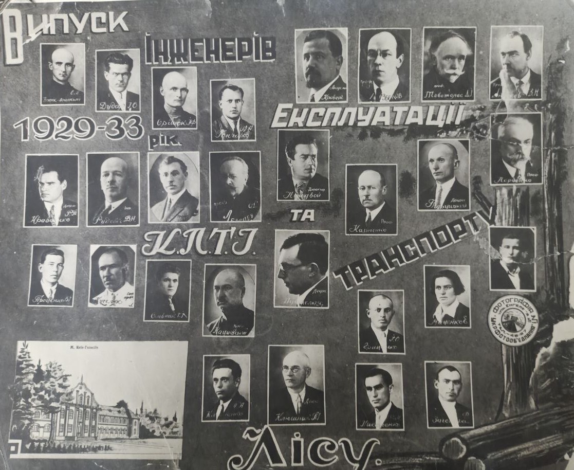 1933 рік. Випуск інженерів експлуатації та транспорту. Київський лісот..... інситут.