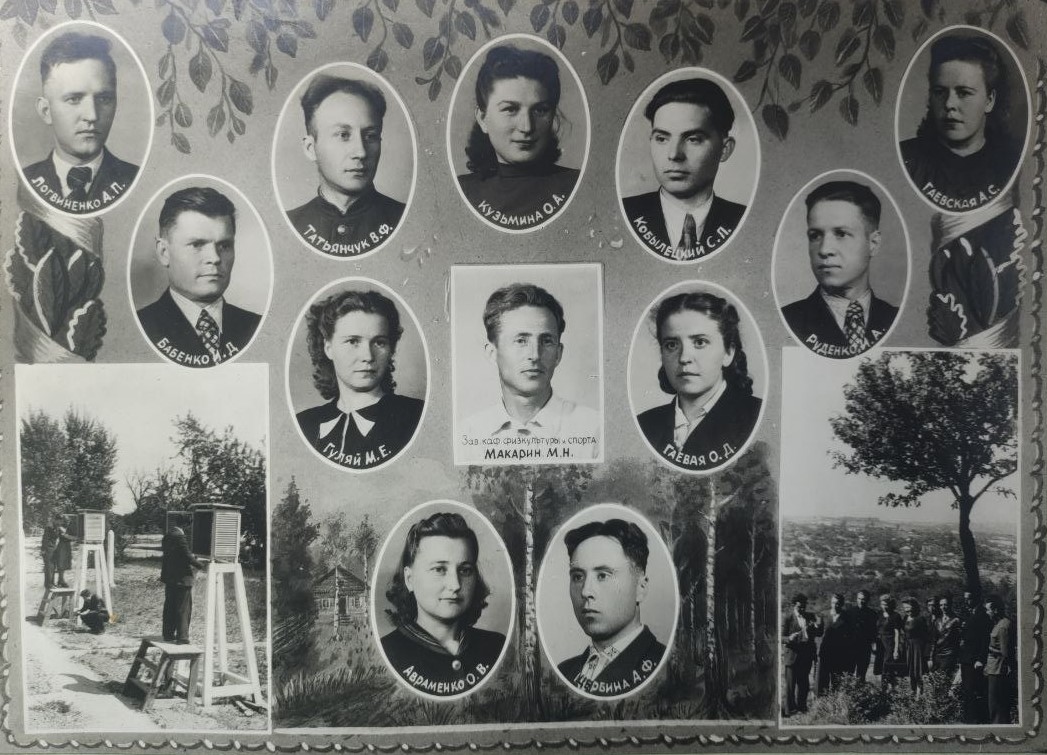 (мова оригіналу: Прокопец В.Я., Крившенко Л.В., ассист. Атаманенко Н.Н., Гладкова Н.Д., Лагода А., Гриб Н.П., Тугай Г.А., Дронова Л.С., Роговская Н.Д., Жданов И.Г., Логвиненко А.П., Татьянчук В.Ф., Кузьмина О.А., Кобылецкий С.П., Гаевская А.С., Бабенко И.Д., Гуляй М.Е., зав. каф. физкультуры и спорта Макарин М.Н., Гаевая О.Д., Руденко И.А., Авраменко О.В., Щербина А.Ф.)