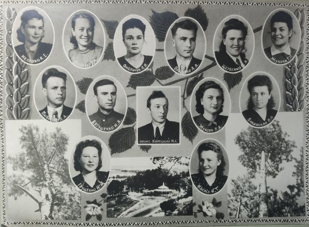(мова оригіналу: Присяжнюк С.Н., Борисенко Л.Д., ассист. Левченко В.П., Ляшенко П.Д., Пучко А.И., Неволько А.А., Савич В.Ф., Войцеховский В.Я., Калиниченко С.А., Осипчук А.С., Батуро Т.Н., Сапожникова Н.В., Неезжалая Н.А., Дичанский К.П., ст. преп. Миловидов А.Н., Давиденко П.А., Задоя Н.И., Колесникова Н.С., Афиногенова М.С., Федоряченко П.Д., Штепенко Л.С., Капелько А.П.)