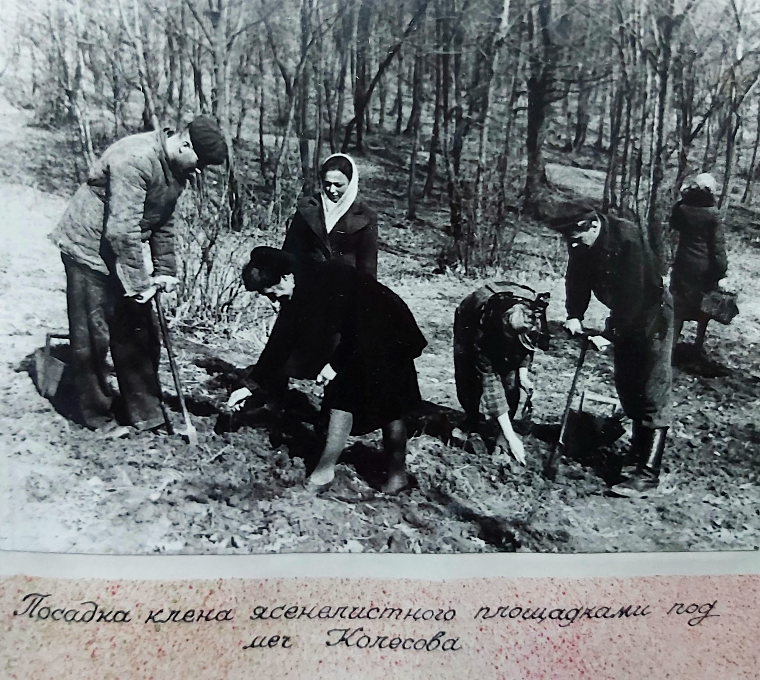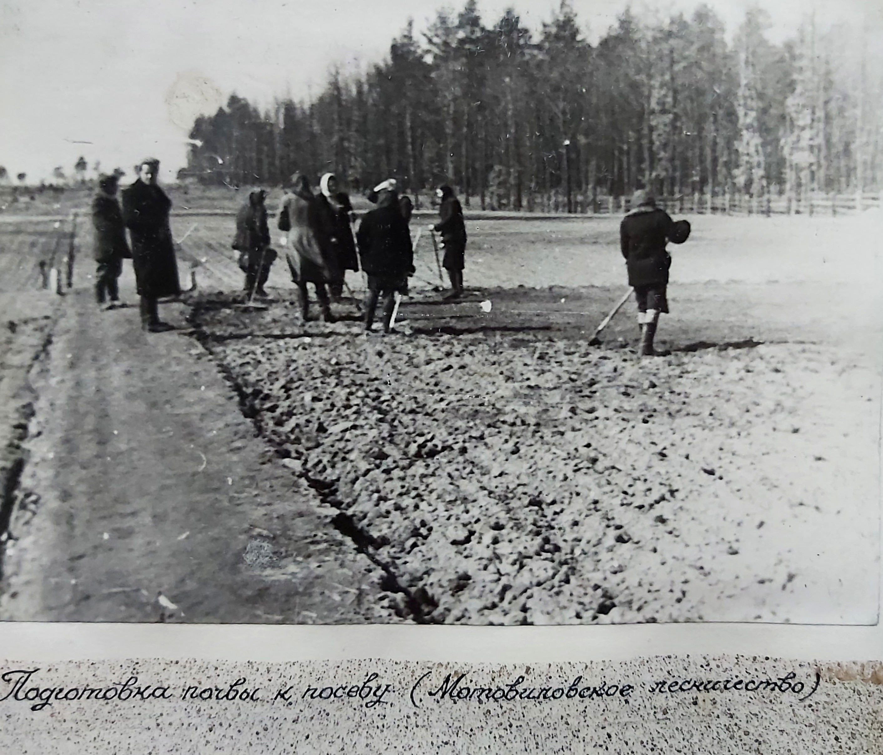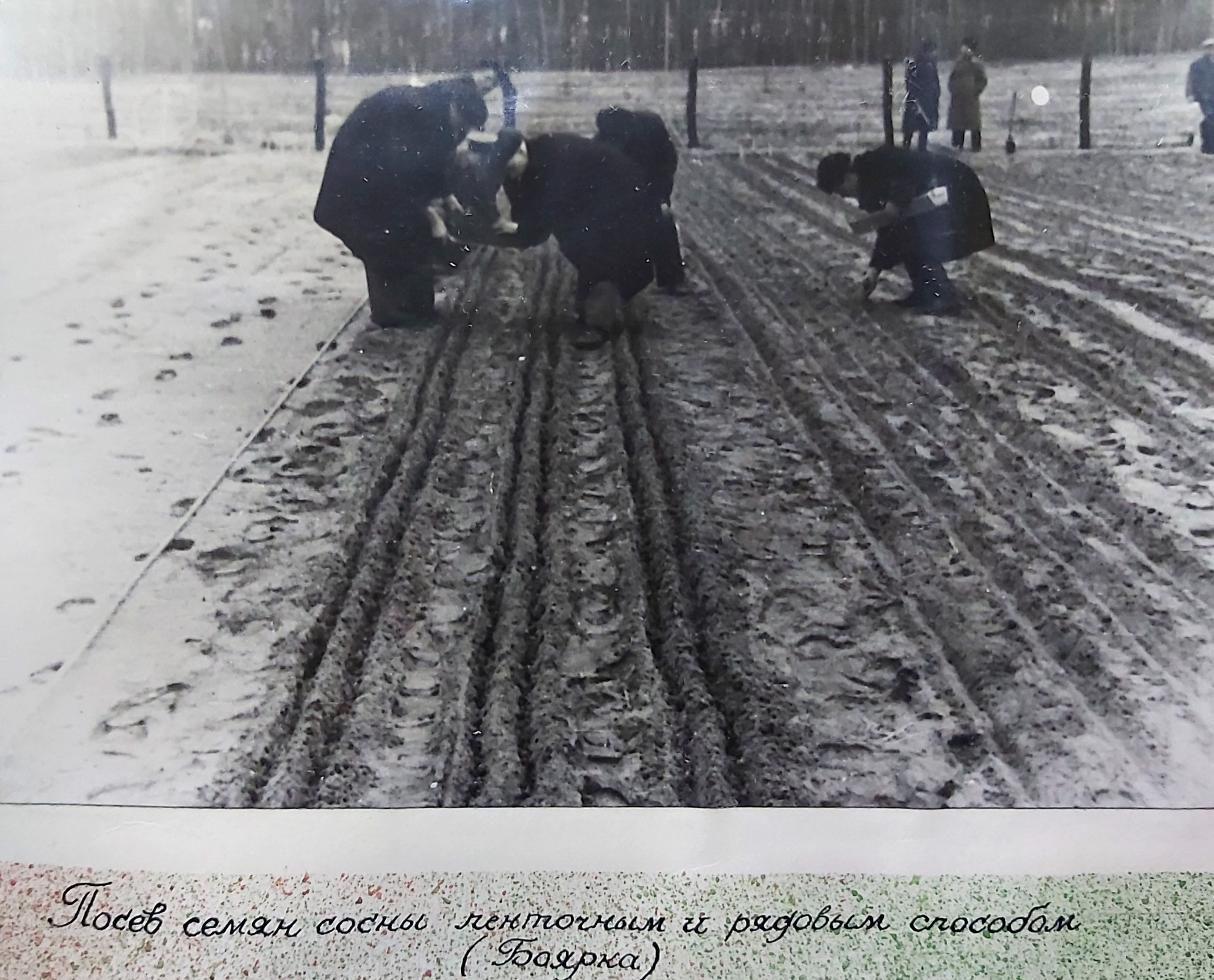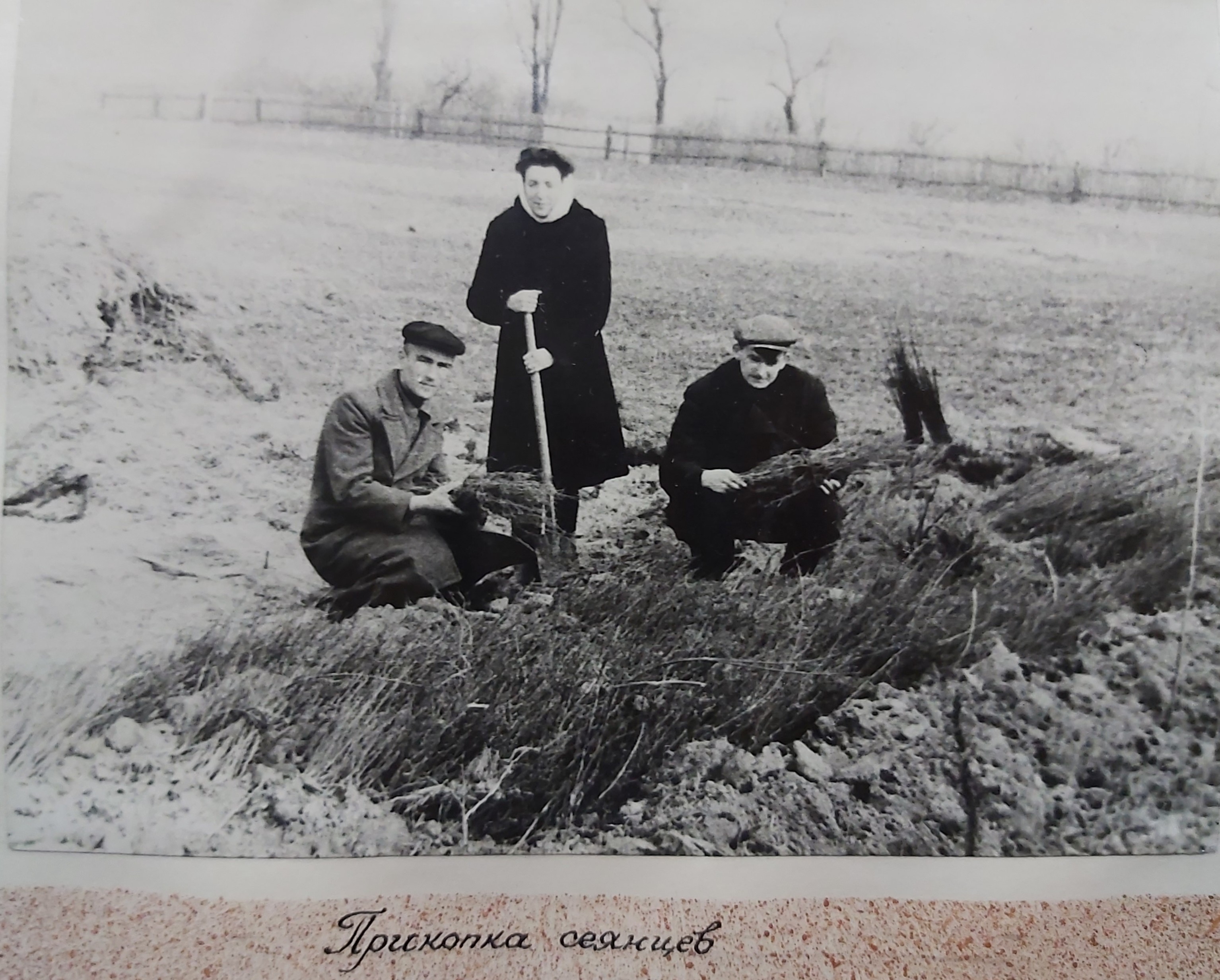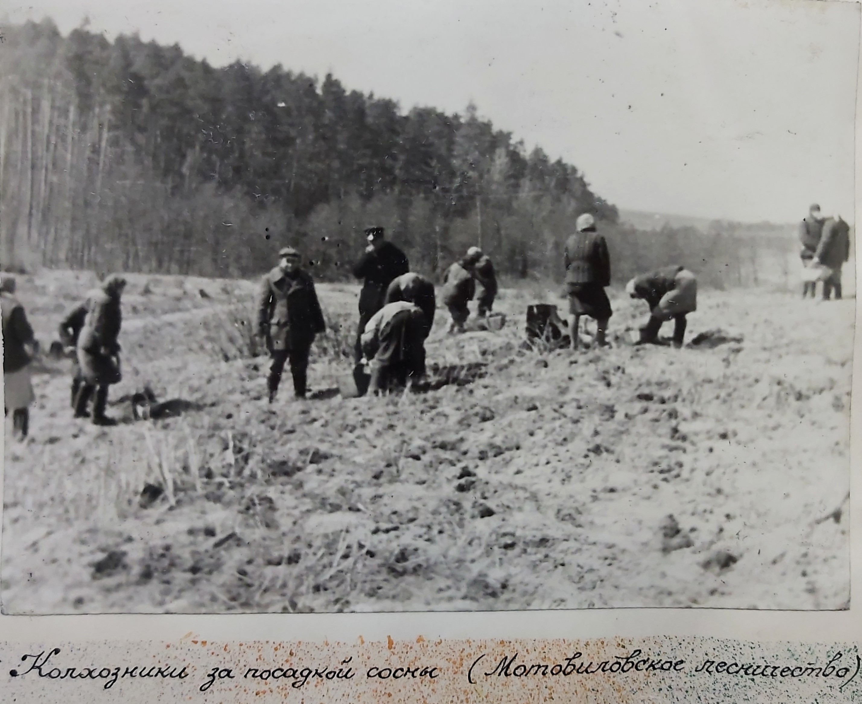 1949 рік. Лісовідновлювальні роботи студентів Київського лісогосподарського інституту у Боярському навчально-дослідному лісгоспі.