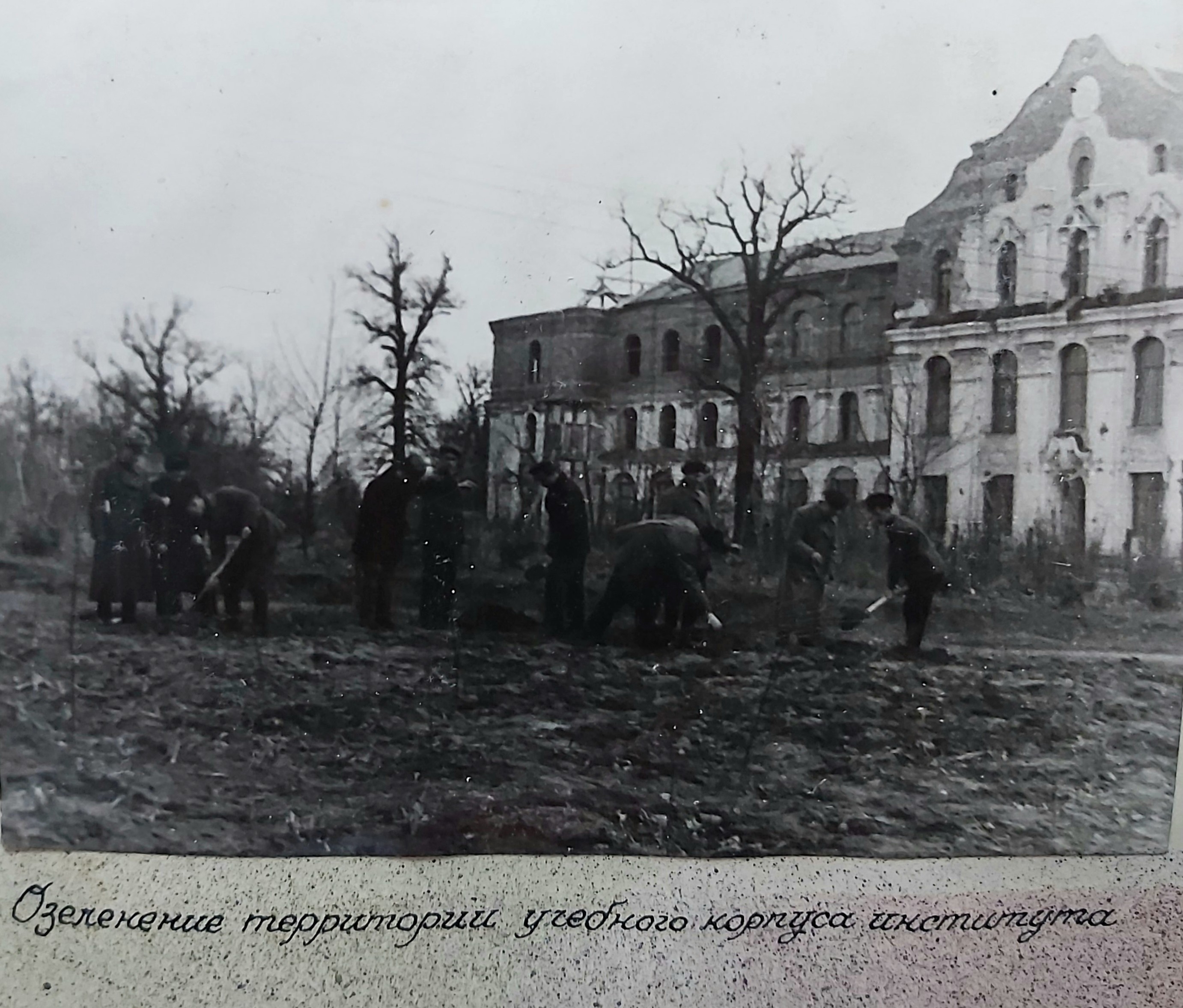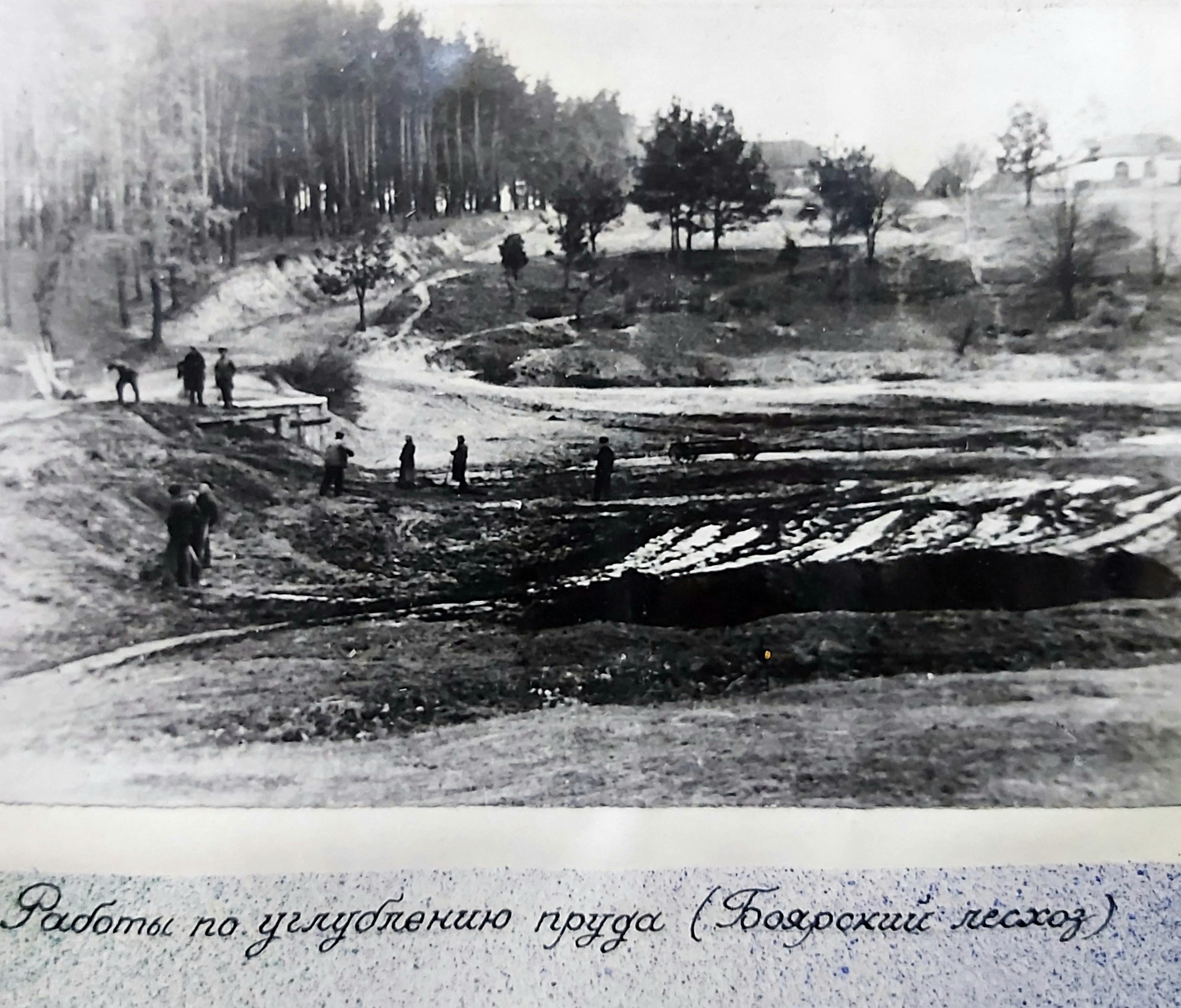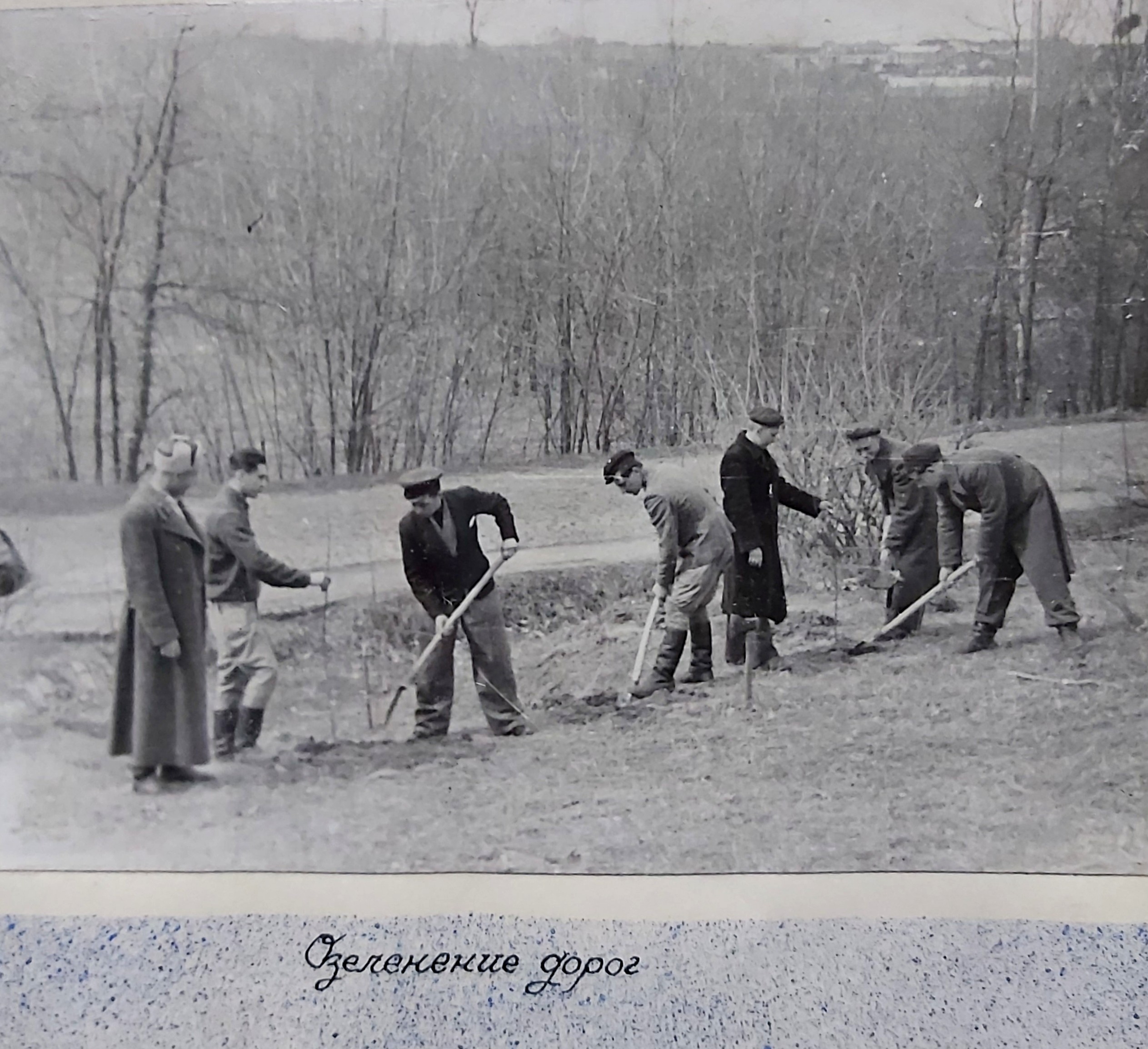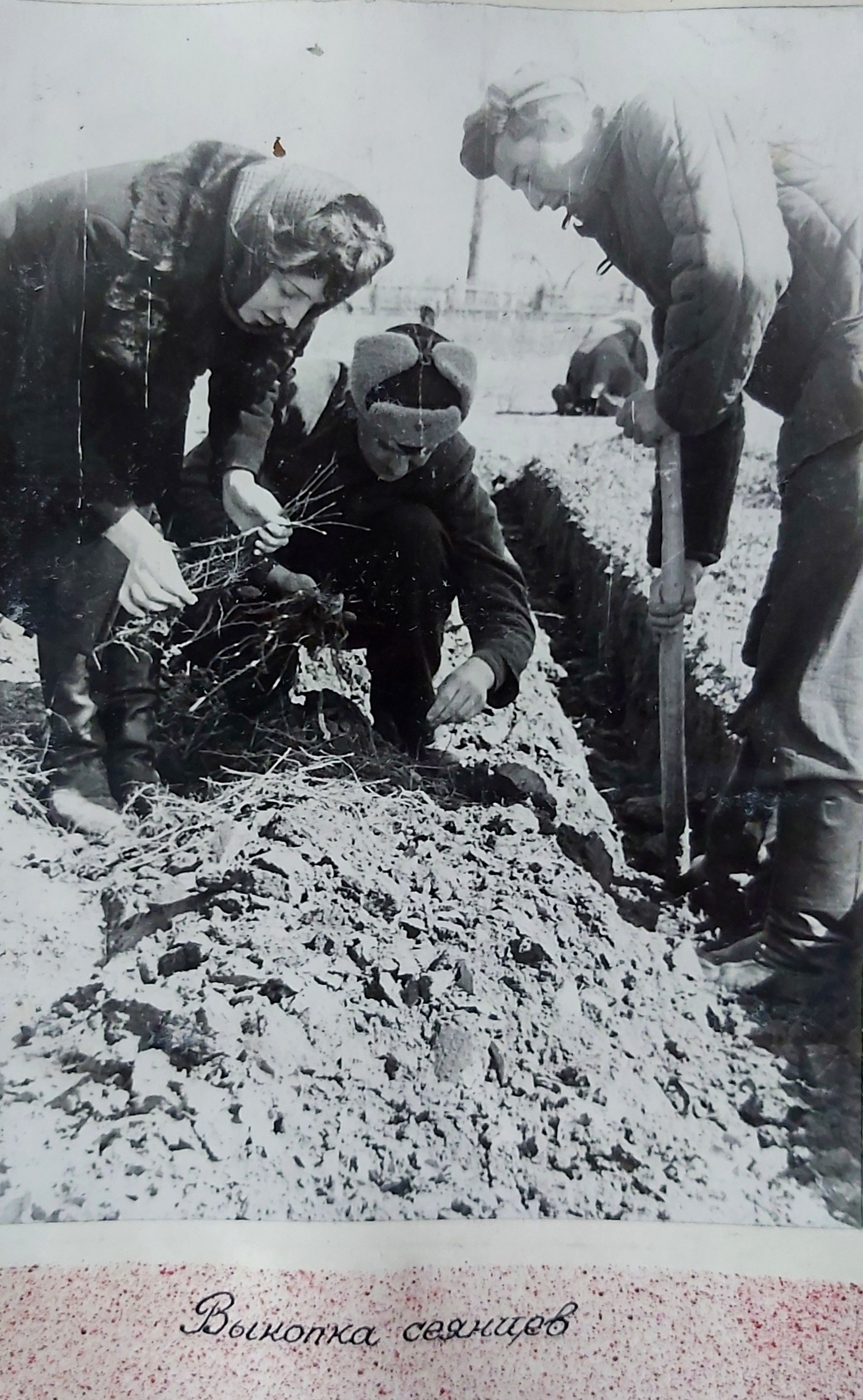 1949 рік. Лісовідновлювальні роботи студентів Київського лісогосподарського інституту у Боярському навчально-дослідному лісгоспі.