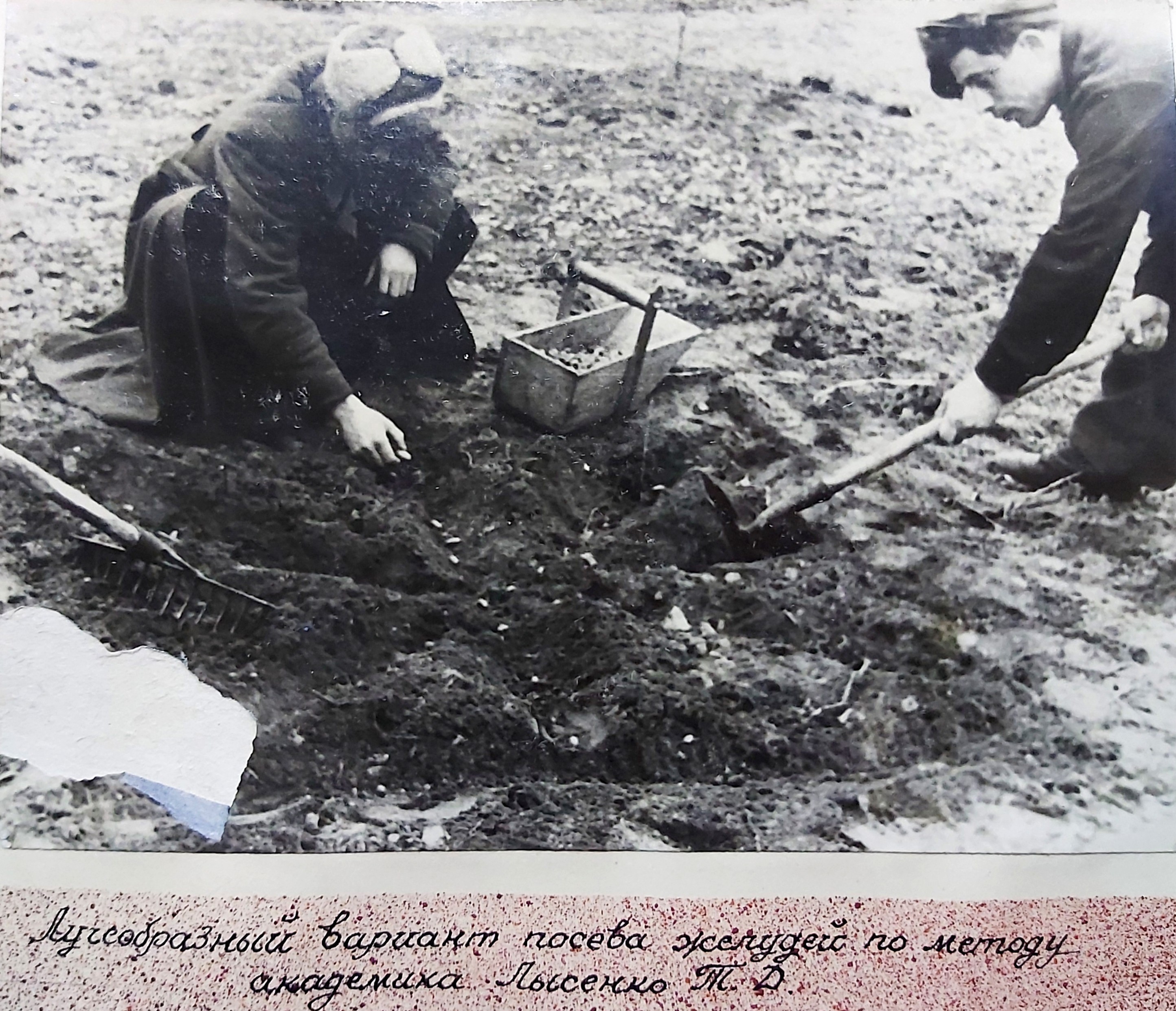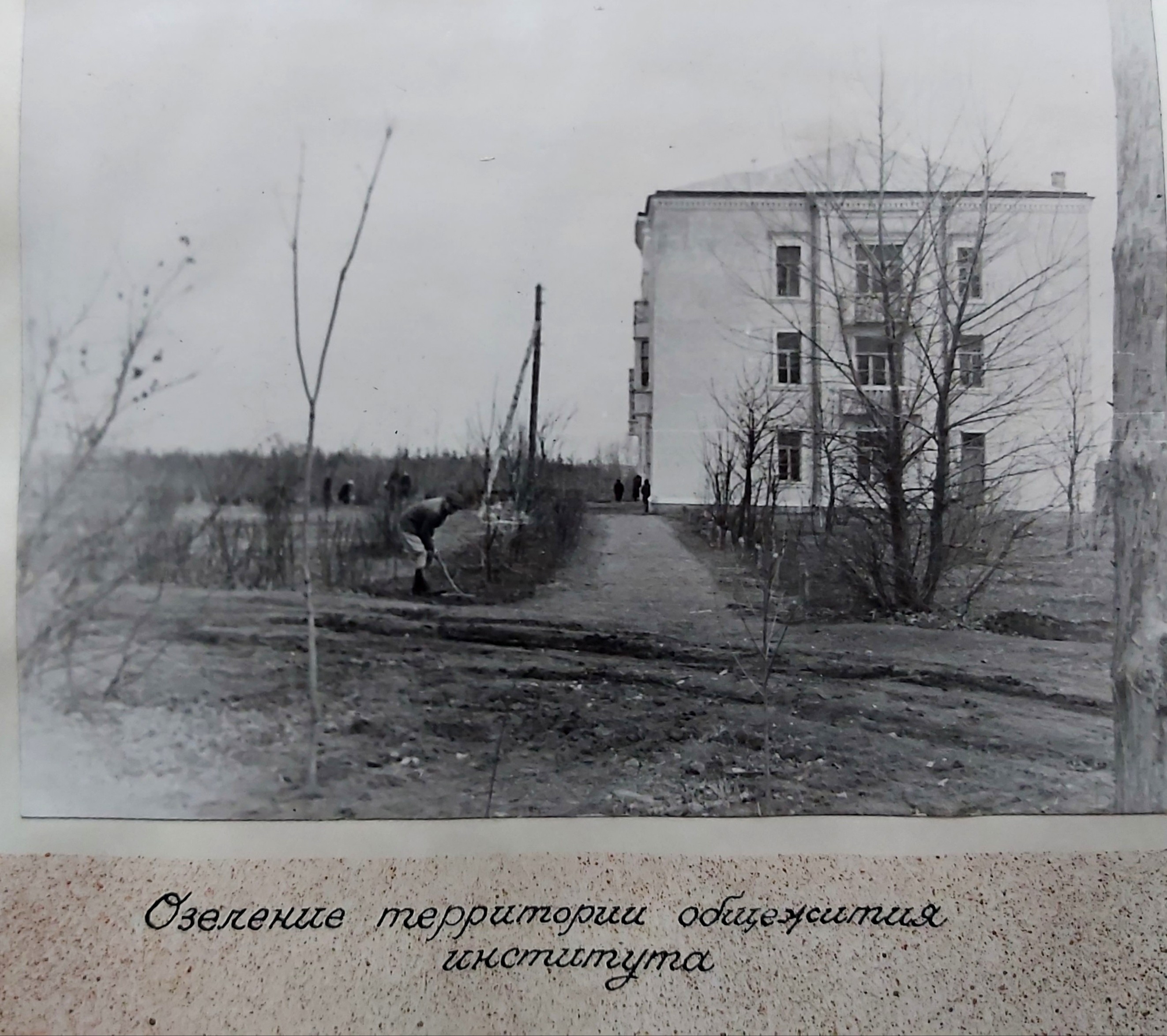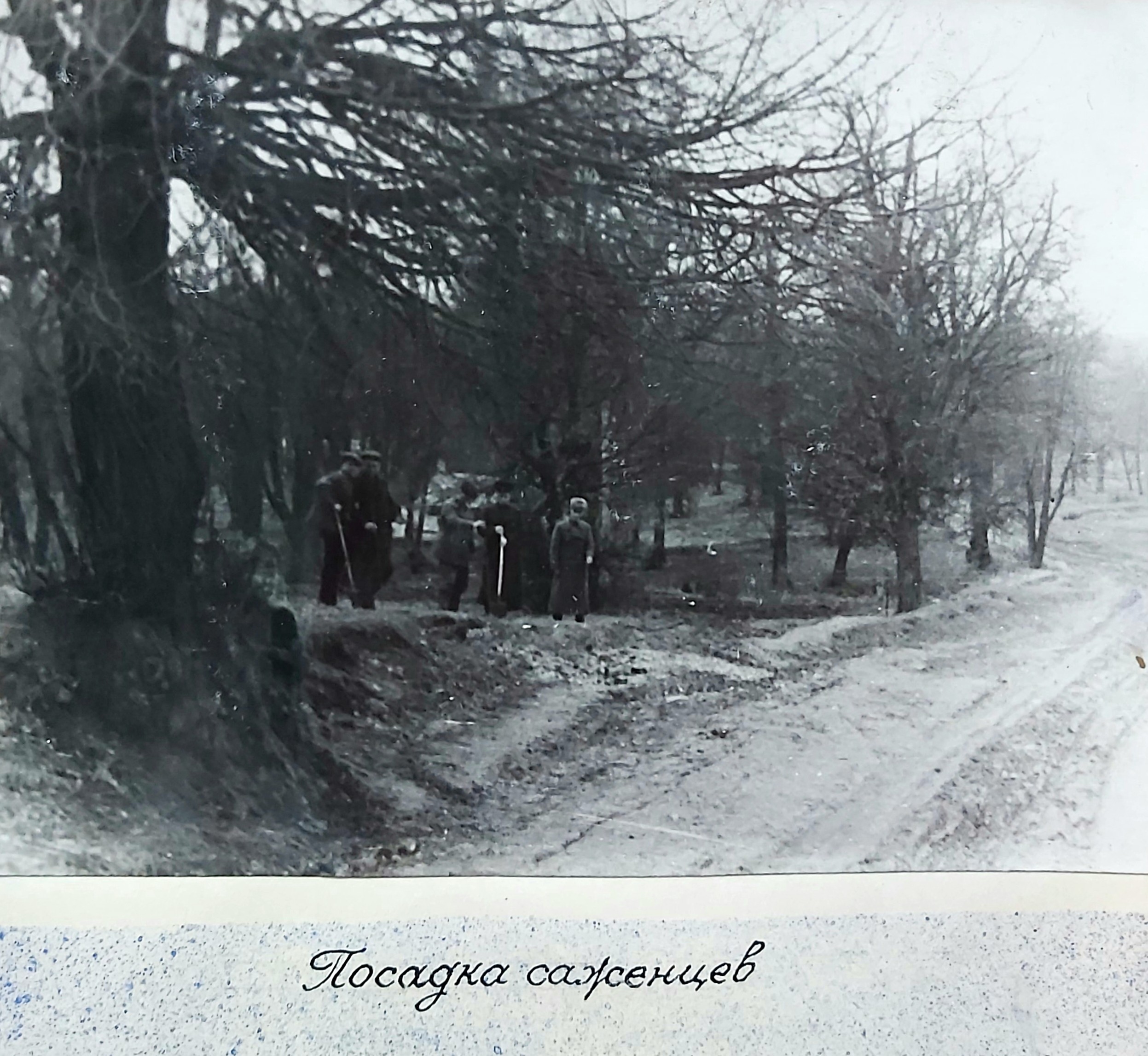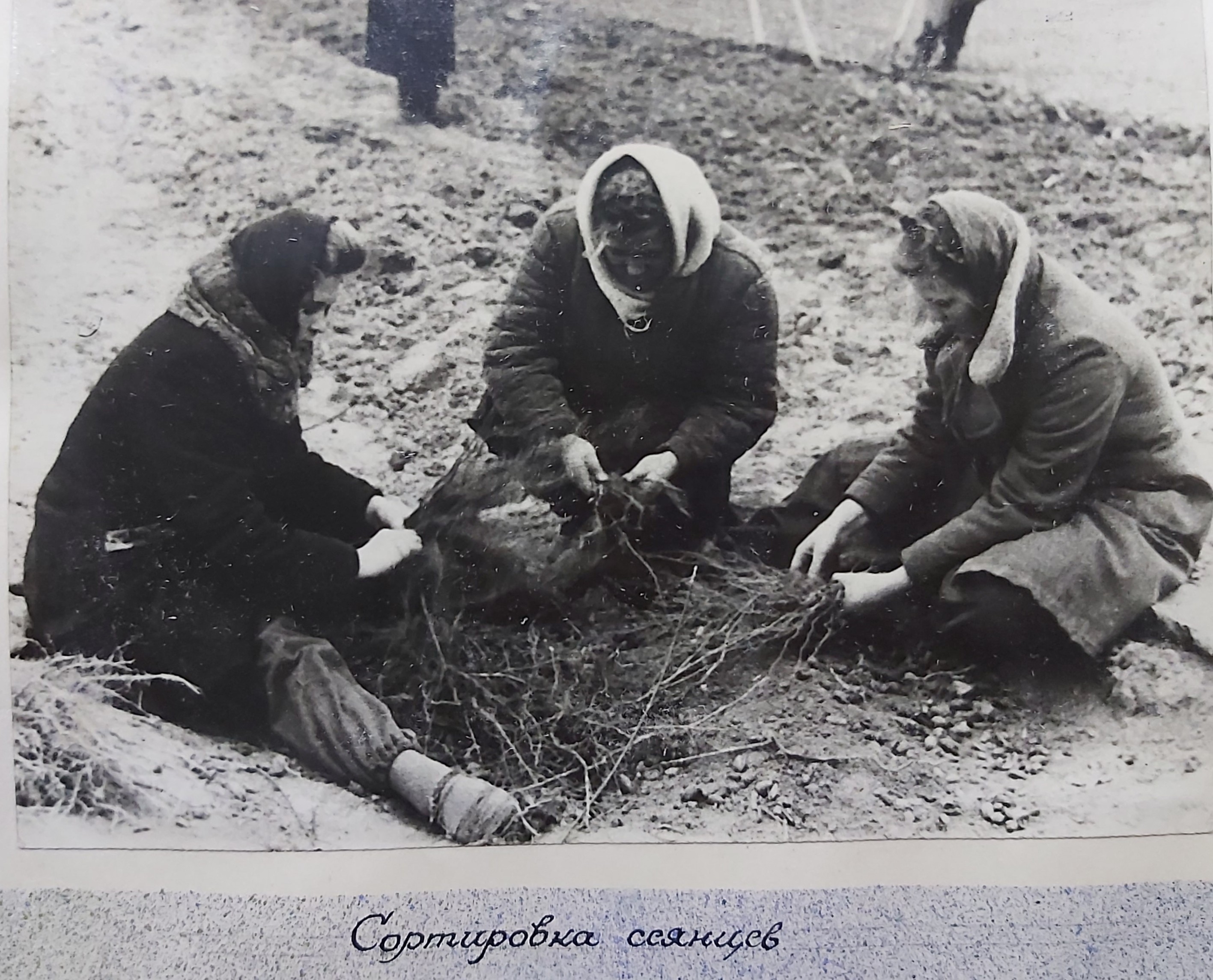1949 рік. Лісовідновлювальні роботи студентів Київського лісогосподарського інституту у Боярському навчально-дослідному лісгоспі.