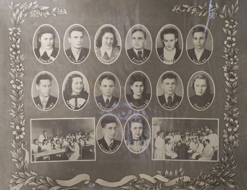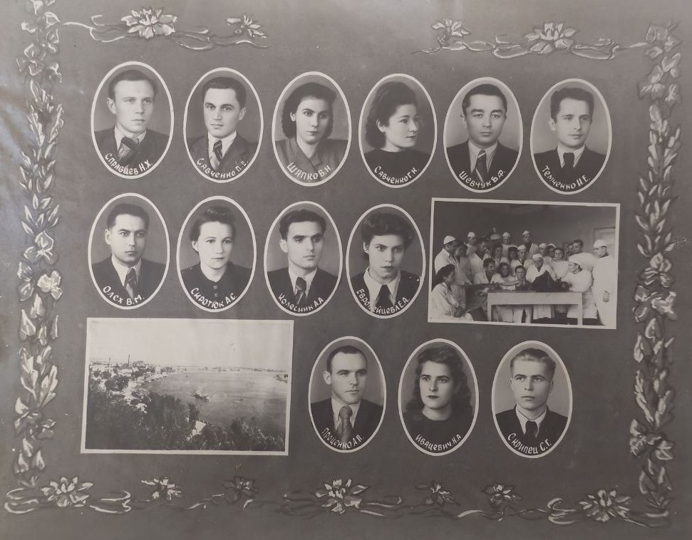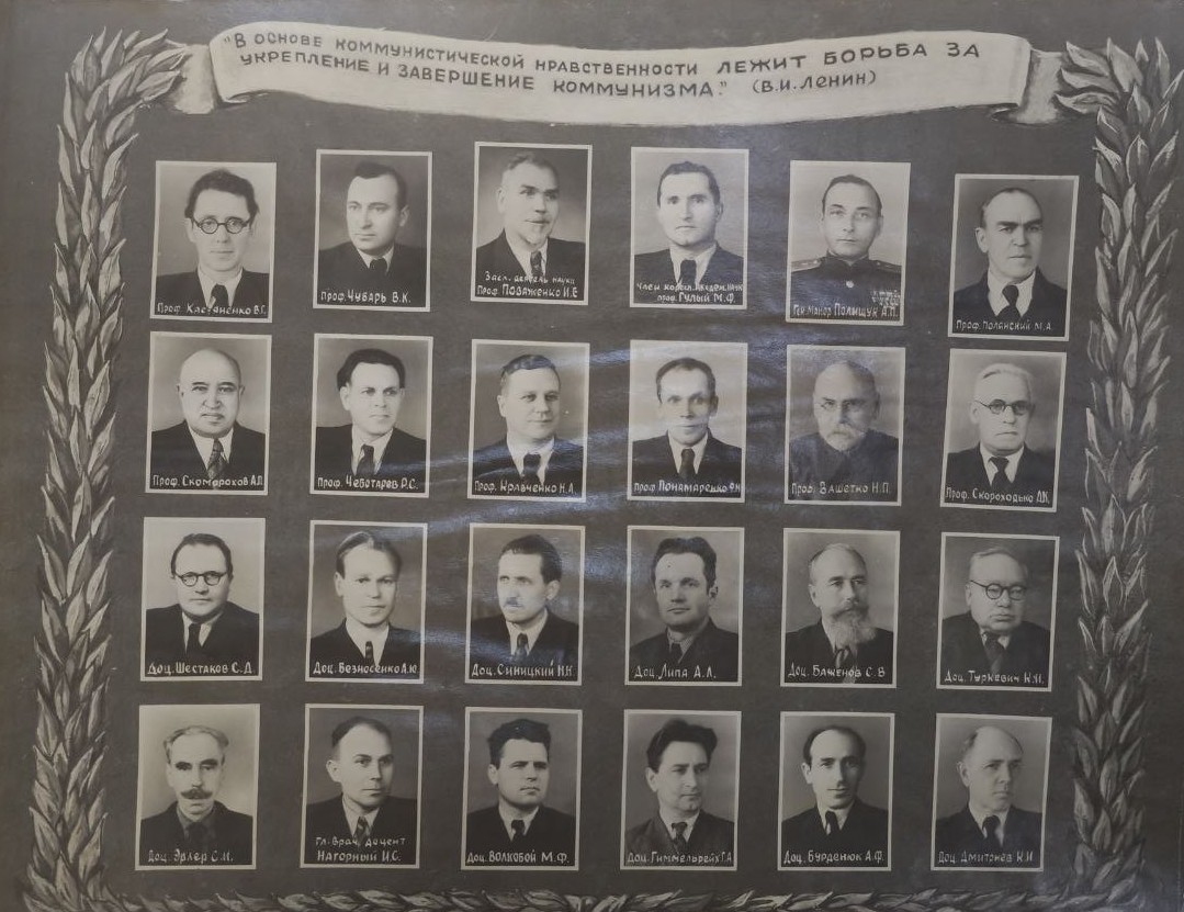 (мова оригіналу: проф. Полянский М.А., проф. Касьяненко В.Г., проф. Поваженко И.Е., зав каф. марксизма-ленинизма Аветисьян, директор и-та, проф. Лемишко П.М., секретарь партбюро и-та Горбенко А.В., генерал-майор Полищук, проф. Вашетко Н.П., проф. Пономаренко Ф.М., доц. Баженов С.В., проф. Скоморохов А.Л., проф. Скороходько А.К., гл. врач, доц. Борисевич В.И., зам. директора по научн. учебн. работе, проф. Слобоспицкий Т.П., проф. Чубарь В.К., проф. Гулый М.Ф., проф. Кравченко, проф. Маркевич А.П., доц. Бурденюк А.Ф., ст. препод., майор Алехин Д.И., доц. Безносенко А.Г., доц. Туркевич К.И., доц. Шестаков С.Д., асс. Орлова К.В., доц. Синицкий Н.Н., доц. Эрлер С.И., доц. Волкобой М.Ф., доц. Нагорный И.С., зам. директора по хоз. части Барцеховский Б.И., доц. Гиммельрейх Г.А., ст. препод. Емельянов В.К., доц. Дмитриев К.И.).