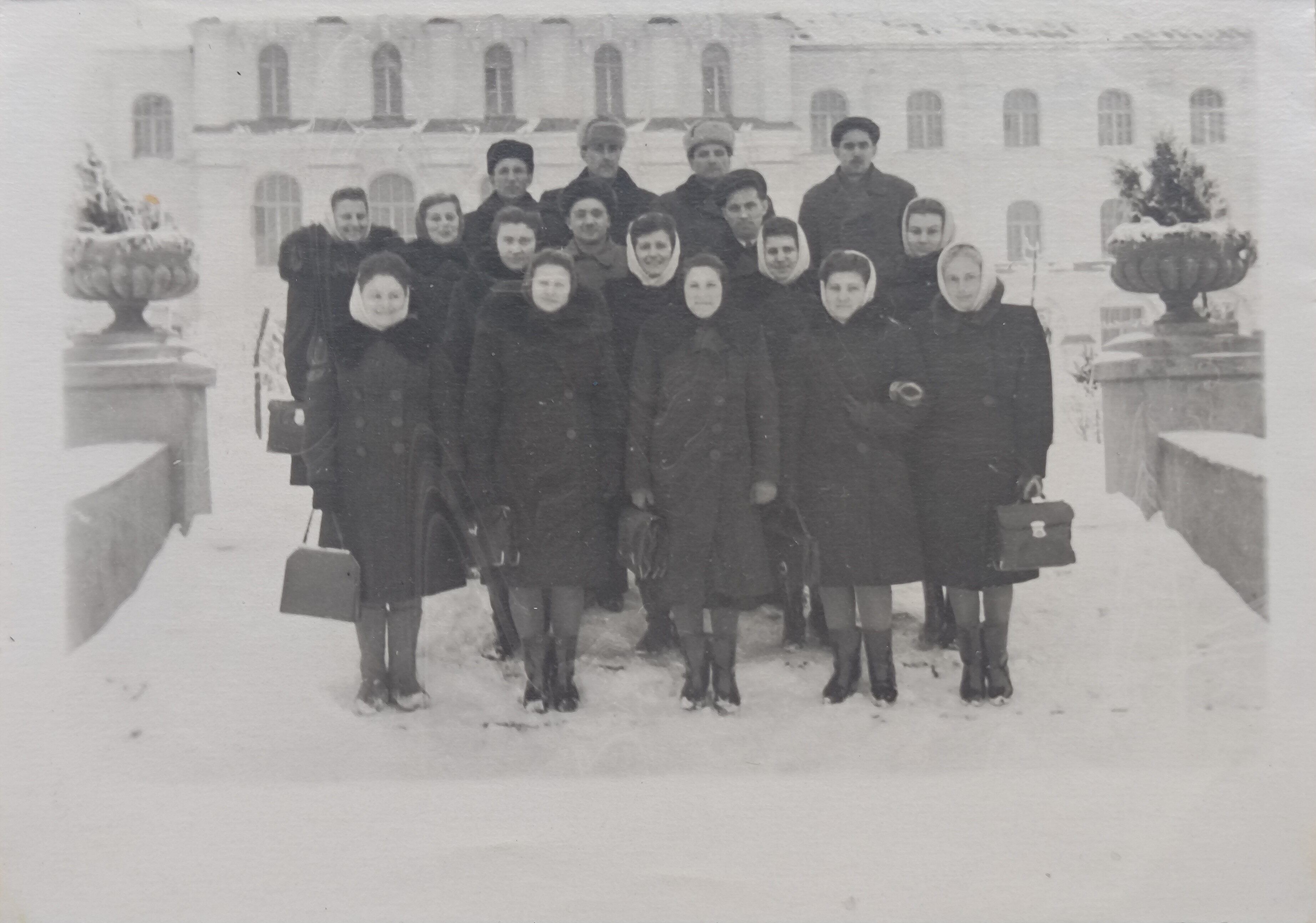 1.03.1951. Київський лісогосподарський інститут. м. Київ. Студенти на фоні навчального корпусу № 1