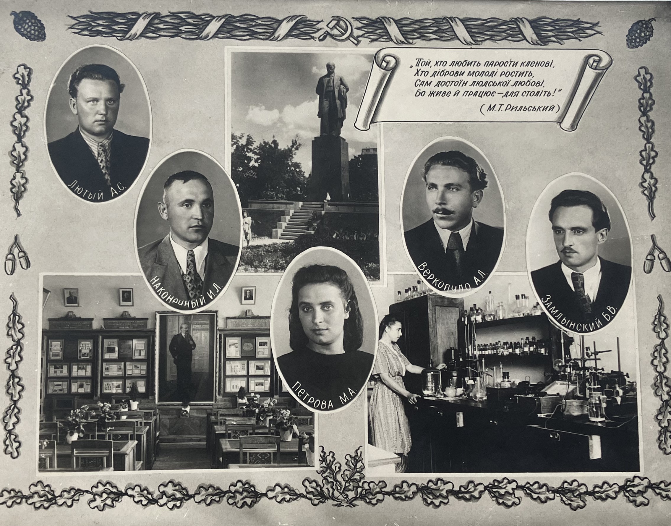 (мова оригіналу: Карпуша А.А., доцент Бублик С.П., ст. преподаватель Онищенко Г.Г., секр. партбюро доцент Плужник Д.К., директор доцент Пересыпкин В.Ф., канд. истор. наук Малущенко М.Е., доцент Манойленко Е.Ф., доцент Кравченко П.П., Кузьменко Н.И., Бочек Ф.Ф., Стеценко Г.Л., Еременко Ф.И., Слободяник Л.Ф., Голуб П.З., зав. курс. Котюжинский В.В., Бульботенко Г.А., Щегельский Т.Т., Гаврильченко З.Я., Коцевальский А.К., Повстянко А.К., Ковальчук Ф.К., Атаманюк И.Г., Подухвалов А.Р., Савинчук И.З., Шельващенко Г.С., Зибницкий А.И., Марченко П.М., Михайлюк И.В., Моравский Ю.К., Шестовецкий М.К., Колотюк В.Ф., Крылов И.Е., Шайдулин М.Г., Белоусов Е.А., Пелых А.П.)