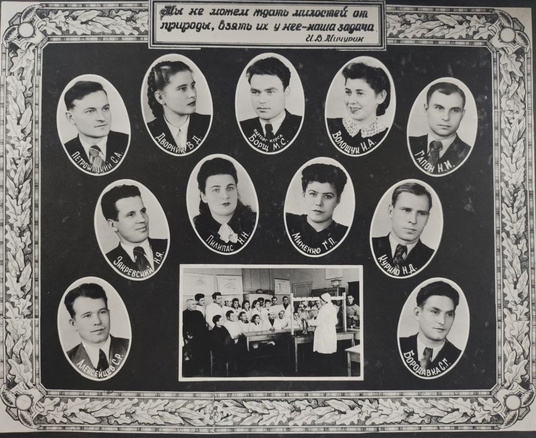 1952 рік. Річні курси підвищення кваліфікації директорів М.Т.С. (1951-1952 рр.). Київський Ордену Трудового Червоного Прапора сільськогосподарський інститут.