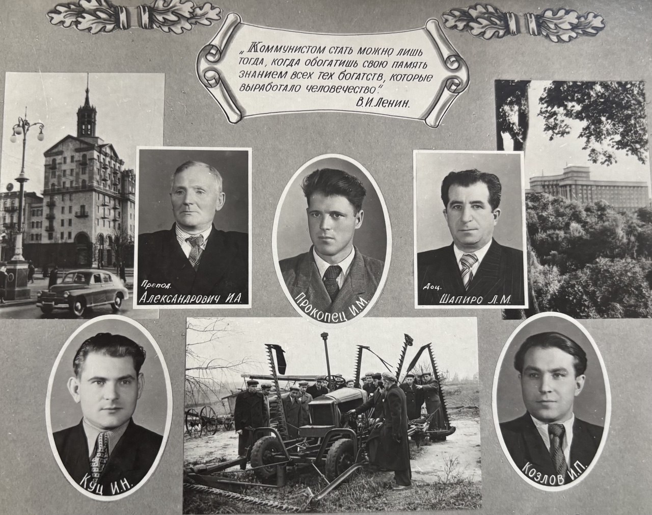 1954 рік. Випуск 6-ти місячних курсів перепідготовки директорів МТС УРСР. Київський сільськогосподарський інститут.