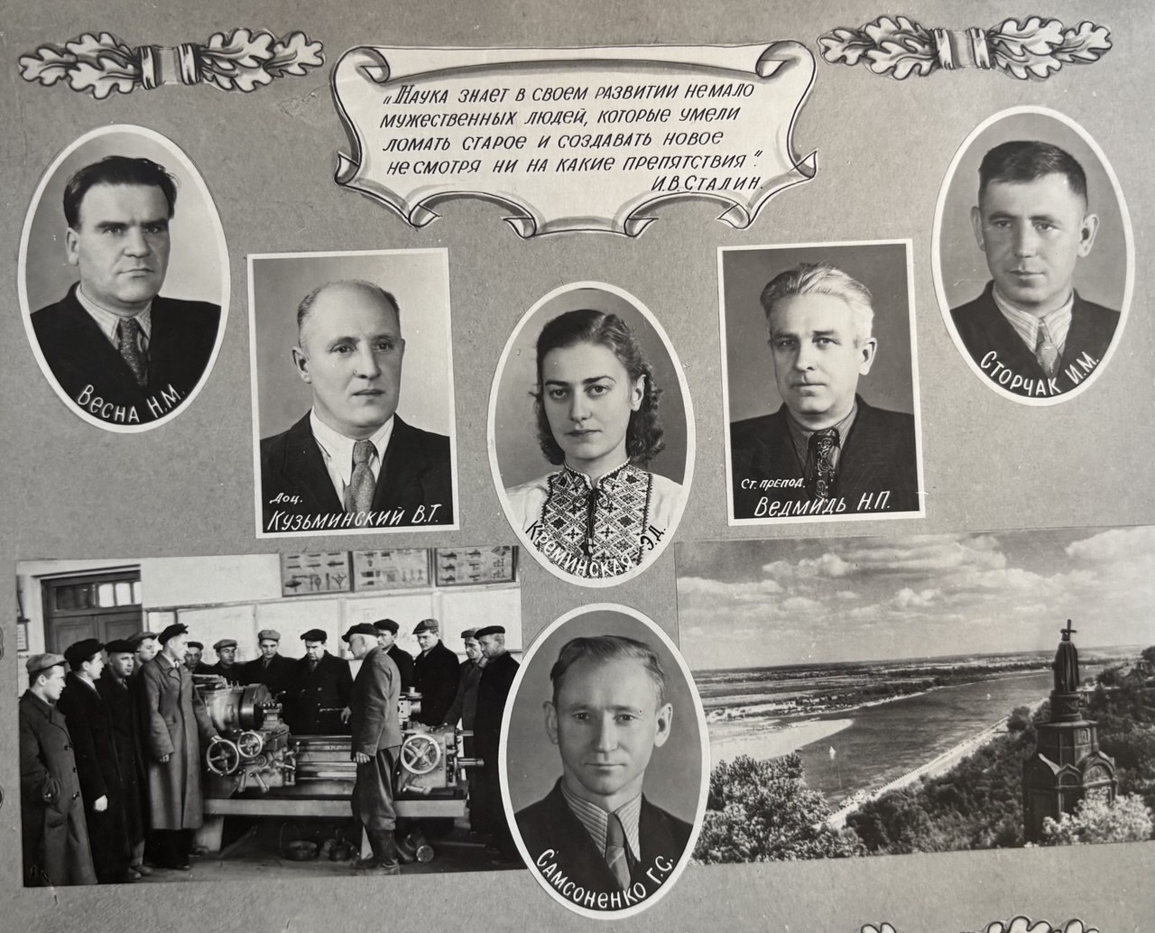 (мова оригіналу: зав. каф., доц. Котов А.Н., зав. каф. Макарин М.Н., зав. каф. доц. Глаголев С.А.,ст. препод. Клейнер С.М., ст. препод. Зігмунд К.Б., зав. каф., доц. има И.М., ст. препод. Малюгин Т.Т., зав. каф., доктор наук,проф. Скобец Е.М.,асс. Вертепная Г.И., зав. каф., доц. Сикорский Ю. А., асс. Кавецкий Н.С., ст. препод. Житов И.Н., проф. Тимофеев К.И., зав. каф., доц. Єзрохи И.А., ст. препод.Игнатенко И.М., доц. Данченко И. П., асс. Полывянный П.М., нач. отд. кадров Животовский П. И.)