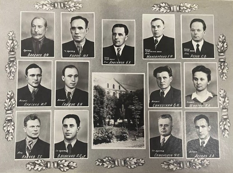 Доц. Меженный Я.Ф., проф. Оксиюк П.Ф., проф. Михайловский А.Г., проф. Биленко Д.К., доц. Марков В.М., доц. Григорович Д.А., асс. Герасименко Е.В., доц. Подолич Б.М., доц. Хохол Н.Ф., доц. Захарчук П.В., асс. Подолич Т.Я., доц. Колоша И.Л., доц. Манойленко Е.Ф., препод. Хижняк П.М.