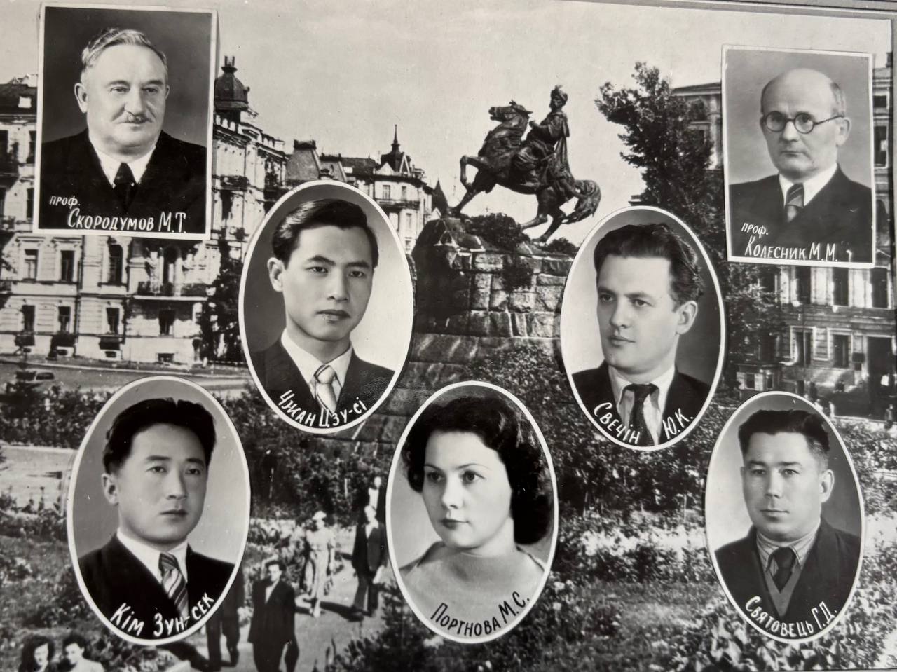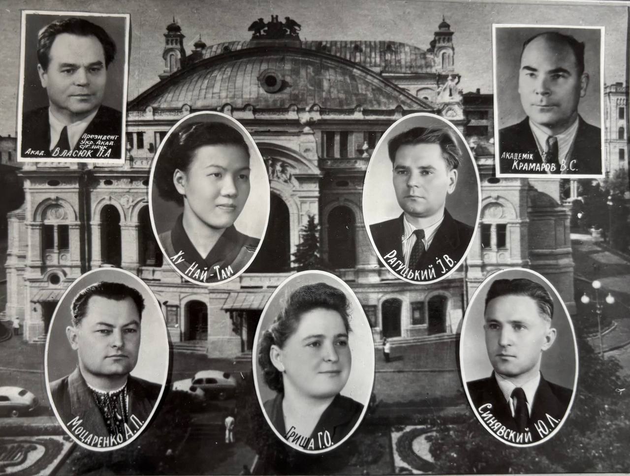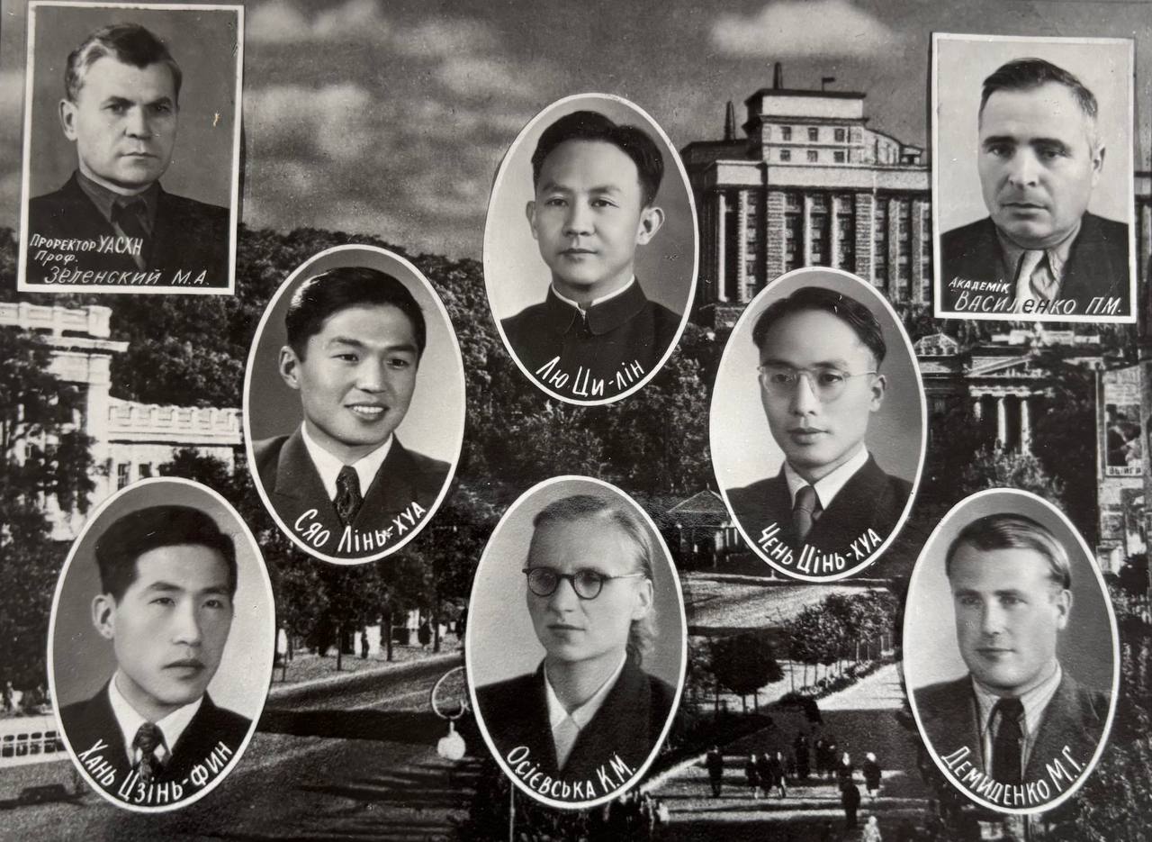 Мова оригіналу: проректор УАСХН проф. Зеленский М.А., Сяо Лінь- хуа, Лю Ци-лін, Чень Цінь-хуа, академік Василенко П.М., Хань Цзінь–фин, Осієвська К.М., Демиденко М.Г.