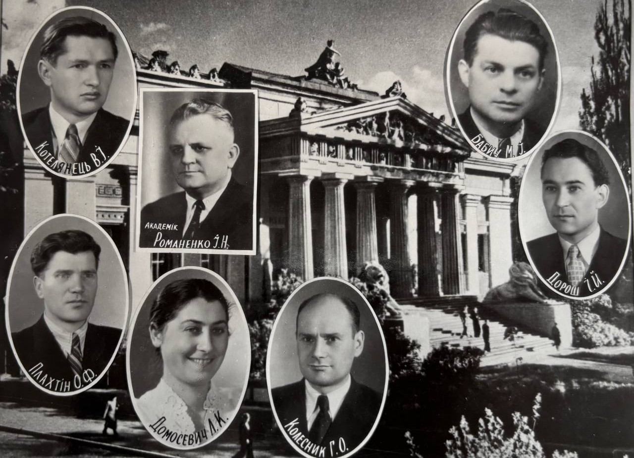 Прізвища, наукові ступені, вчені звання та посади написано транслітерацією з російської мови українською графікою, відповідно до написання в джерелах того часу