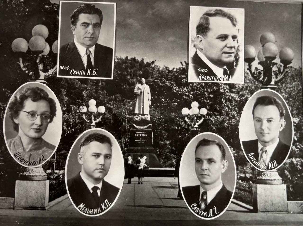 (мова оригіналу: секретарь академии Науменко Л., декан ф-та Григорович Д.Н., секретарь партбюро ф-та Щербатюк П.Е., Бидий А.И., Рогаченко С.Н., Лещенко Г.Т., Овдієнко Л.Е., Мостовой Я.С., Завгородний Ф.И., Атаманенко Н.Н., Манойленко Е.Ф., Зрибник Л.Я.)