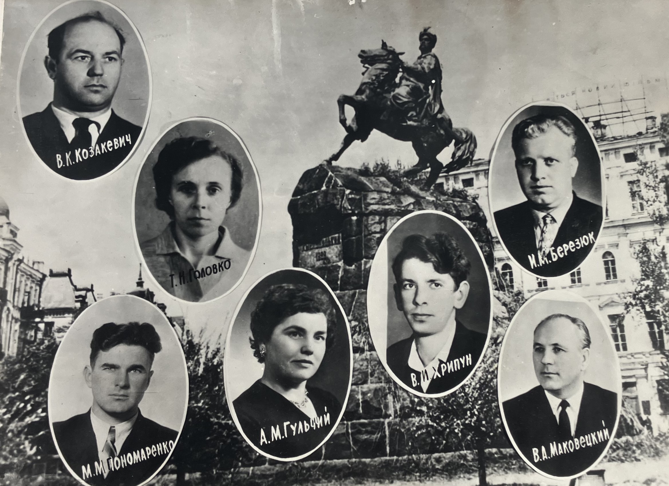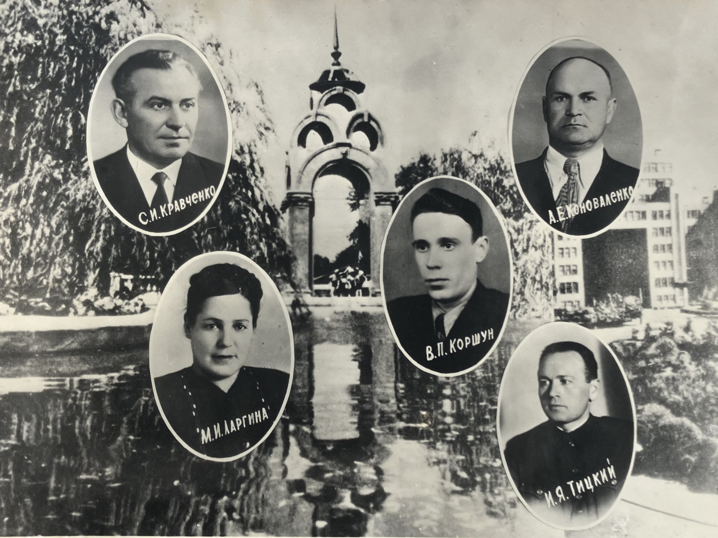Профессор Биленко Д.К., Проф. Зеленський М.А., Проректор по заоч.у. Катюжинский В.В., Ректор Профессор Пересыпкин В.Ф., Доцент ф-та проф. Городній М.Г., Секретарь парткома Фурдияк А.В., Доцент Петренко М.И., Профессор Григорович Д.А.