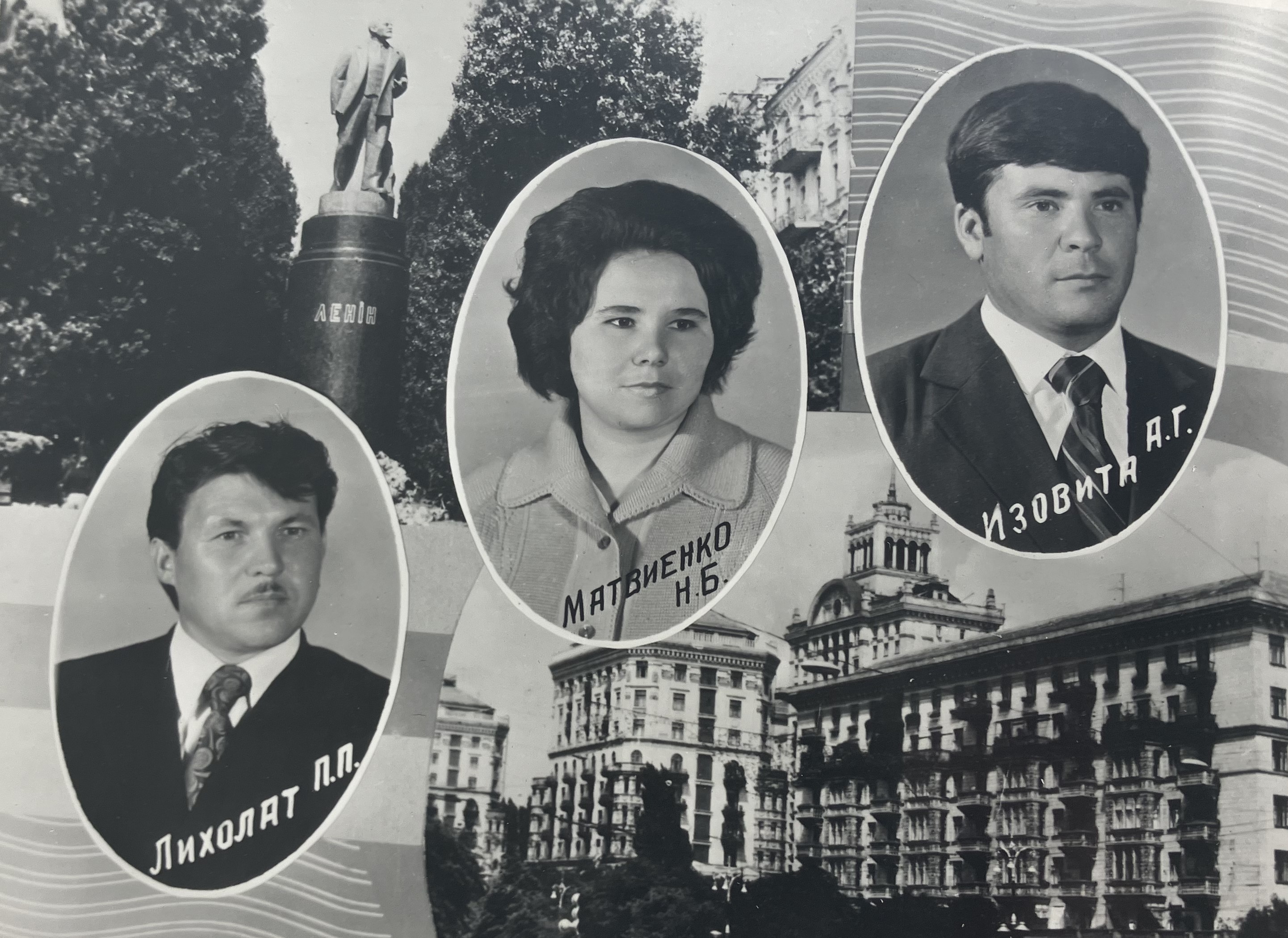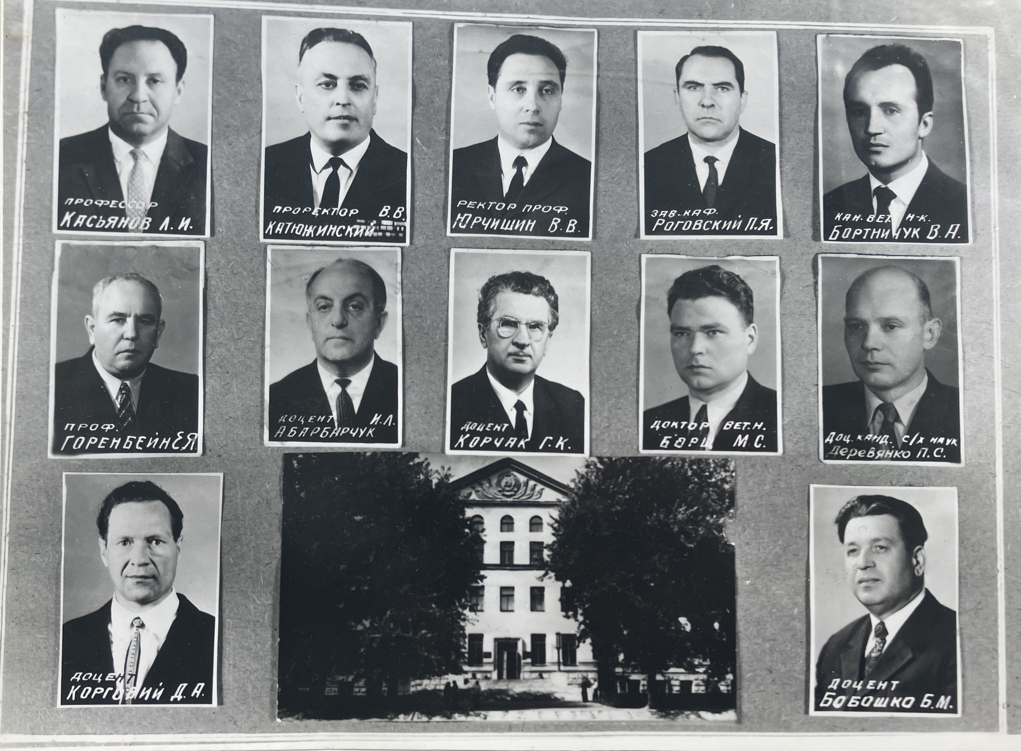 Прізвища, наукові ступені, вчені звання та посади написано транслітерацією з російської мови українською графікою, відповідно до написання в джерелах того часу