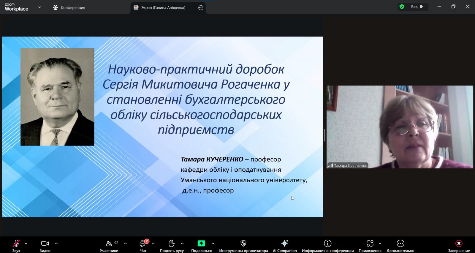 Професор кафедри обліку і оподаткування Уманського національного університету Людмила Мельник акцентувала внесок української наукової школи та роль М. Рогаченка у розвитку національної школи обліку. Професор кафедри обліку і оподаткування Західноукраїнського національного університету Василь Дерій підкреслив особливу роль Сергія Рогаченка у формуванні національної школи обліку, а професор кафедри обліку і оподаткування Уманського національного університету Тамара Кучеренко – його науково-практичний доробок у сфері бухгалтерського обліку сільськогосподарських підприємств.