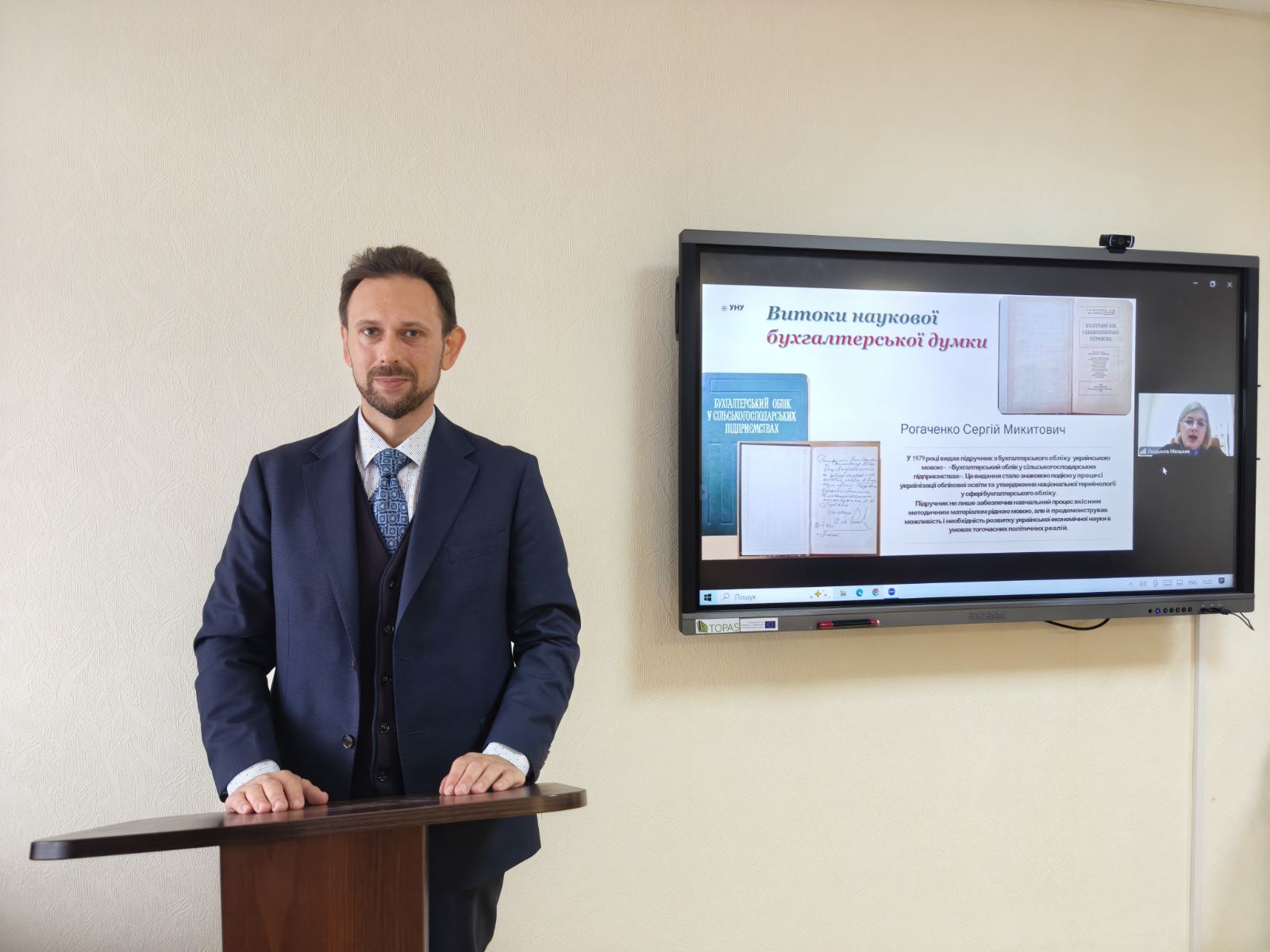 До привітальних слів долучився Юрій ЦИМБАЛЮК – декан факультету економіки і підприємництва Уманського національного університету. Здобувачі вищої освіти – члени гуртка поглибили знання завдяки виступам провідних науковців у сфері бухгалтерського обліку та оподаткування. Зокрема, завідувач кафедри обліку та оподаткування Володимир Литвиненко на основі архівних даних розкрив історичний шлях розвитку не лише Сергія Рогаченка, але й кафедри обліку та оподаткування НУБіП України.