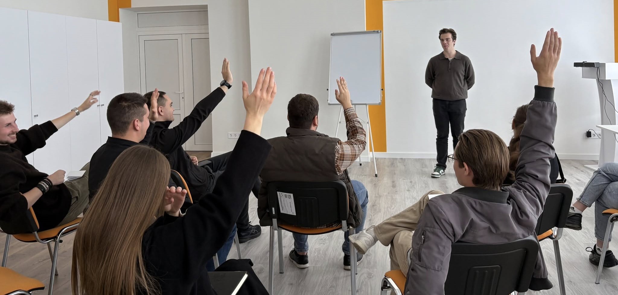 The COPILOT course „Robotic systems in sustainable production technologies” (two ECTS credits) included these goals. It was delivered by instructors Yurii Romasevych and Mykola Korobko. In this course, the students designed robotic solutions, ran simulations, and tested sustainability-oriented production strategies in authentic contexts. Rather than receiving only theoretical knowledge, students engaged in hands-on problem-solving tasks aligned with their prior skills and interests (a format reflected in the course’s mentoring, laboratory sessions, and interdisciplinary participation). In this course, the Double Diamond innovation process provided a valuable framework for understanding. It included four phases: Discover, where students explored problems and gathered insights; Define, where they narrowed their focus to a clearly framed challenge; Develop, where they ideated and prototyped solutions; and Deliver, where the solution was tested, evaluated, and refined. Methods such as interviews, mapping, brainstorming, and rapid prototyping were essential techniques that helped structure students’ work in robotics projects and guided them toward sustainable, high-impact outcomes. Designing a practical course required understanding the characteristics and backgrounds of the students.