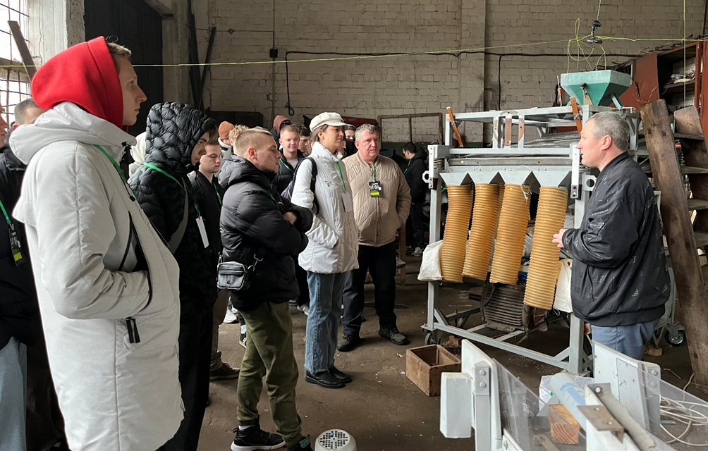 Later, Doctor of Technical Sciences S.P. Stepanenko acquainted students with the operation of an experimental pneumatic seed separator, which separates seeds by grain density.