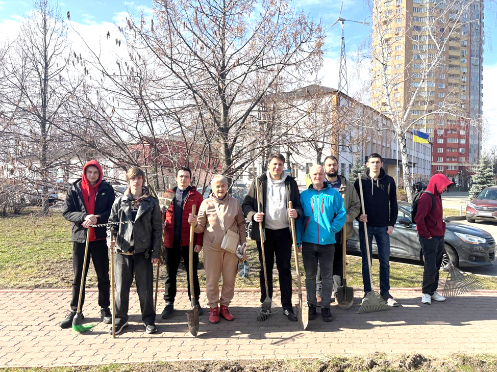 Разом робимо університет кращим: першокурсники спеціальності «Автоматизація, комп’ютерно-інтегровані технології та робототехніка» долучилися до благоустрою території корпусу №11