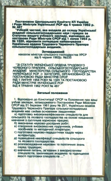 1995 рік - затверджено "Статут" Національного аграрного університету (Постановка Кабінету Міністрів України від 1 червня 1995 р. № 387).