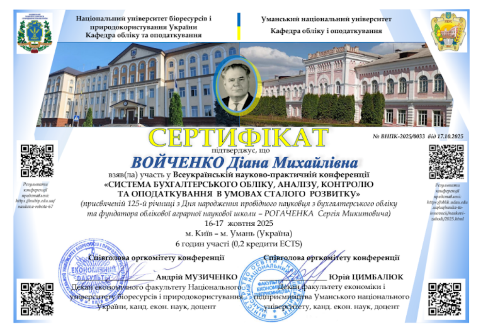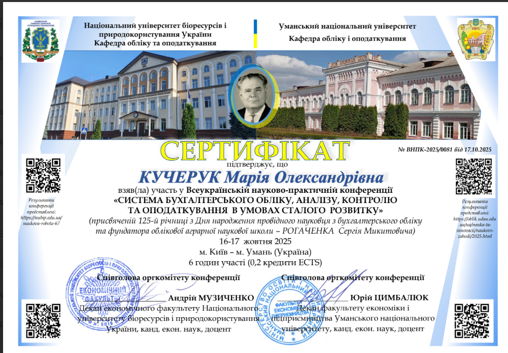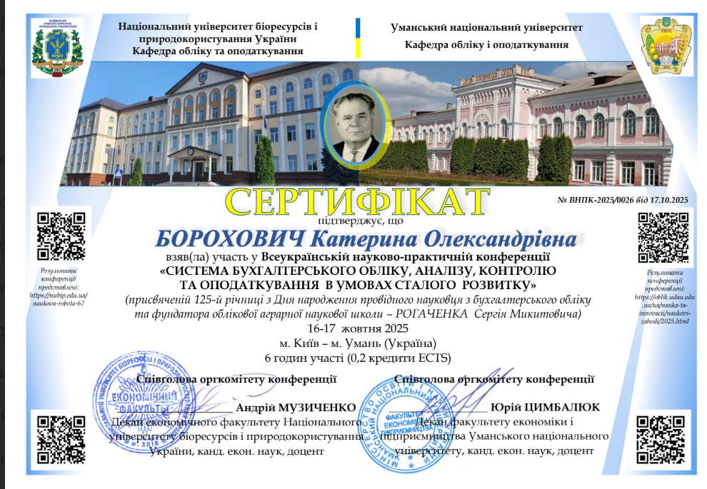 «Система бухгалтерського обліку, аналізу, контролю та оподаткування в умовах сталого розвитку»