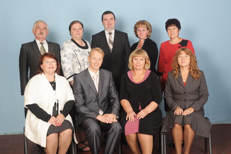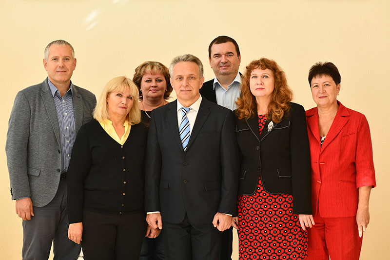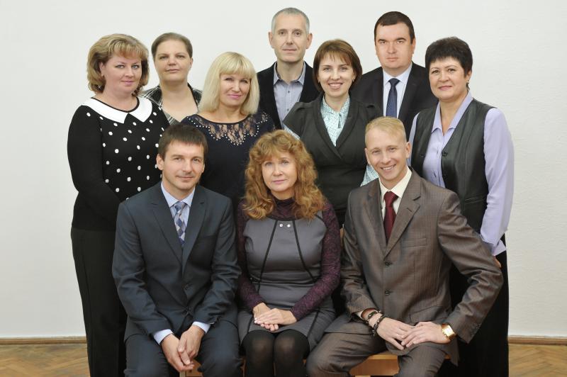 The department staff in the 2018-2019 academic year: from left to right - Cand. of Pedagogical Sciences, Assoc. Prof. M.V. Mikhailichenko, Cand. of Pedagogical Sciences, Assoc. Prof. V.A. Yakovleva, Cand. of Pedagogical Sciences, Assoc. Prof. L.L. Bilan, Candidate of Pedagogical Sciences, Prof. S.O. Kubitsky (Head of the Department), Candidate of Pedagogical Sciences, Associate Professor Y.M. Rudyk, Doctor of Pedagogical Sciences, Prof. N.S. Zhuravska, Senior Laboratory Assistant L.O. Martynyuk