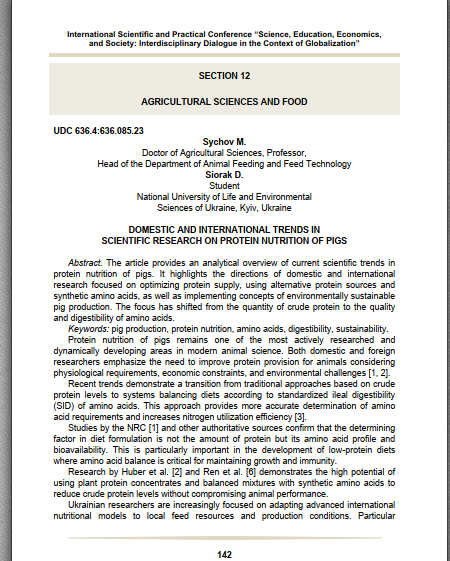 A first-year student of the educational program “Technology of Production and Processing of Livestock Products” in the specialty H2 “Animal Husbandry” of the educational degree “Master” of the leading faculty of animal husbandry and aquatic bioresources of the renowned National University of Bioresources and Nature Management of Ukraine, Dem SORAK demonstrated a high level of professional training and scientific maturity by joining the implementation of the state scientific project “Scientific and practical support for the safety of protein nutrition of farm animals in conditions of martial law and the post-war period” of the Ministry of Education and Science of Ukraine (state registration No. 0124U000924, 2024-2026) under the guidance of Doctor of Agricultural Sciences, Professor, Head of the Department of Animal Nutrition and Feed Technologies named after P. D. Pshenychny – Mykhailo SYCHOV.