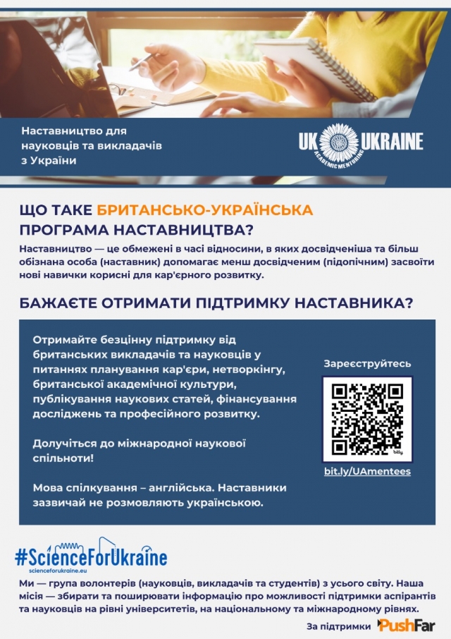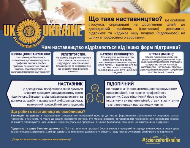 Більше інформації про ініціативу «Наука для України» та наше менторство можна знайти за наступними посиланнями: