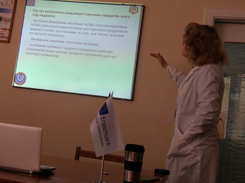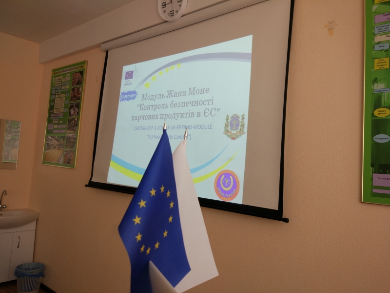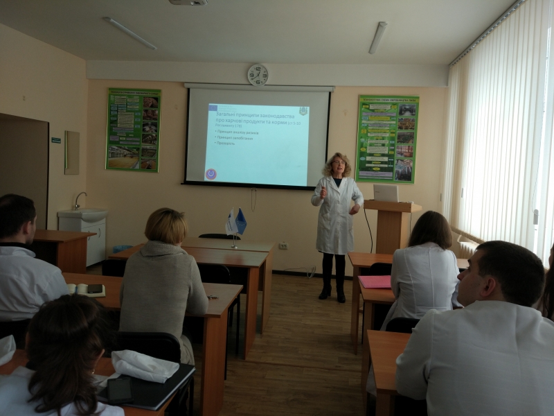 Студенти ОР "Магістр" та гості кафедри заслухали вступну лекцію з курсу "Контроль безпечності харчових продуктів у ЄС" , що викладається в межах реалізації одноіменного проекту програми Ерасмус+, напрям Жана Моне (587548-EPP-1-2017-1-UA-EPPJMO-MODULE), що реалізується кафедрою ветеринарно-санітарної експертизи. Слухачі дізналися про структуру законодавчих органів ЄС, зокрема тих, які регулюють діяльність пов'язану із забезпеченням виробництвам безпечних харчових продуктів.