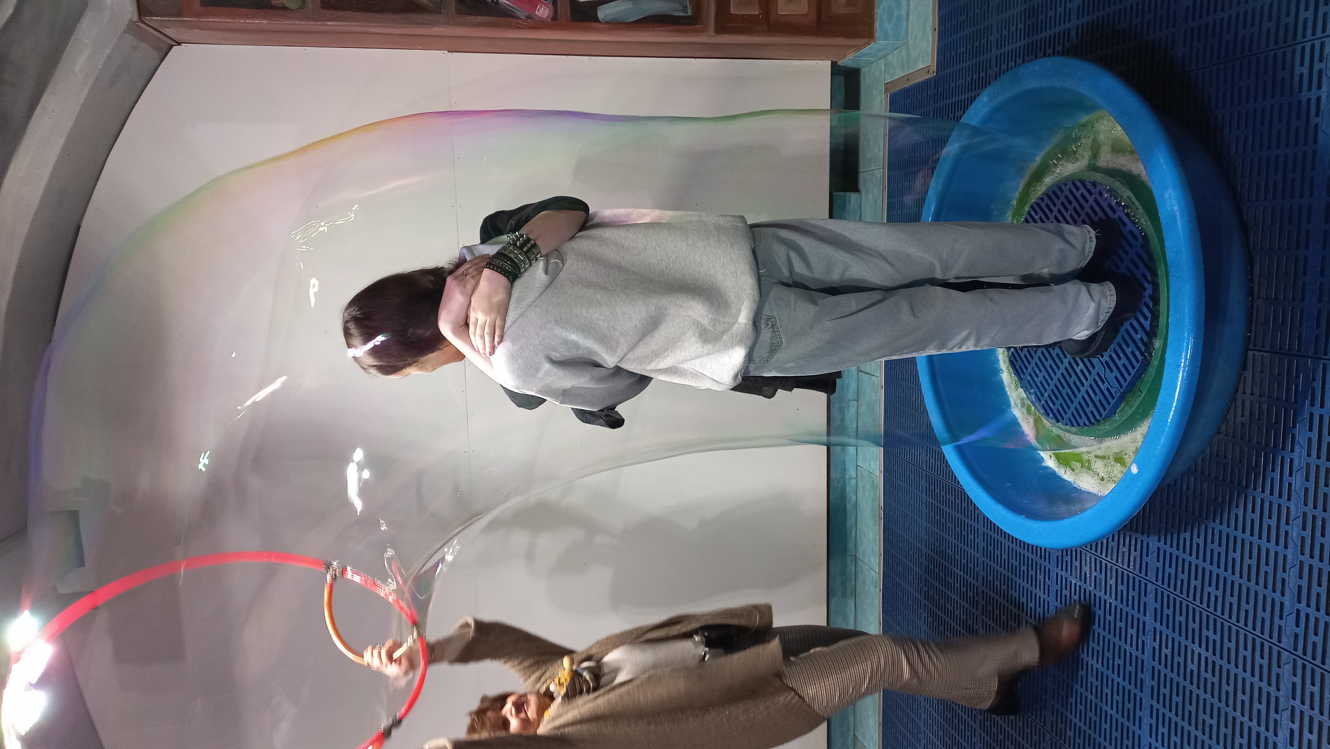 Особливим моментом стала можливість опинитися всередині величезної мильної бульбашки — це викликало у студентів справжній захват і подарувало незабутні емоції. Не менш вражаючим було відвідування умовної карстової печери, де вони побачили моделі гейзерів і водоспадів та відчули атмосферу підземного світу. А спуск чарівним «ліфтом» у глиб Землі дозволив присутнім у наочній формі побачити структуру земної кори, водоносні горизонти та зрозуміти, як формуються джерела й підземні води.