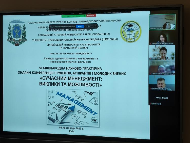 З метою підвищення рівня наукових досліджень студентів і аспірантів НУБіП України у сфері формування ефективних механізмів і методів прийняття управлінських рішень суб’єктами господарювання в умовах воєнного стану та євроінтеграційних процесів, 4 листопада 2025 року колектив кафедри адміністративного менеджменту та зовнішньоекономічної діяльності разом із молодими вченими організували VI Міжнародну науково-практичну онлайн-конференцію студентів, аспірантів і молодих учених «Сучасний менеджмент: виклики та можливості».