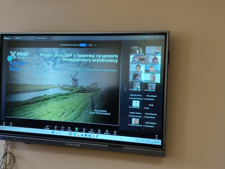 Першою виступила гостьова спікерка – Олеся ГОМОЛЬ, менеджерка компанії МХП, Senior SAP Consultant, випускниця факультету аграрного менеджменту. Вона представила цікаву доповідь на тему «Місце і роль SAP у практиці сучасного менеджменту агробізнесу», поділившись власним професійним досвідом і прикладами використання цифрових інструментів у системах управління.