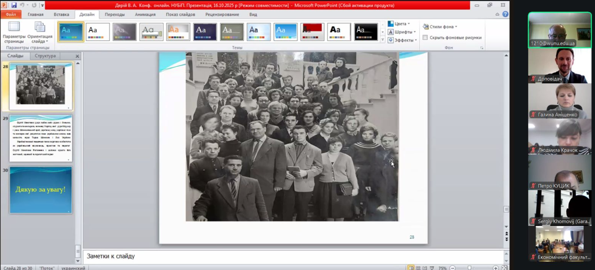16 жовтня 2025 року на базі кафедри обліку та оподаткування економічного факультету НУБіП України, згідно наказу №1178 від 13.10.2025 року, відбувся Всеукраїнський науково-практичний семінар «Спадщина і новації: від постаті фундатора аграрної облікової науки до сучасності». Захід пройшов в змішаному форматі та об’єднав більше сотні учасників — науковців, аспірантів і здобувачів економічних спеціальностей із провідних університетів України.