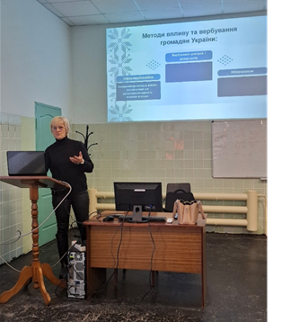 Під час зустрічі Наталія Іванівна навела приклади реальних схем, за допомогою яких представники країни-агресора залучають українців до протиправної діяльності. Це — шантаж, залякування, підкуп, ідеологічна обробка, підставні вакансії чи фіктивні рекрутингові кампанії. Вона підкреслила, що найчастіше злочинці користуються довірою людей або їхнім бажанням отримати легкий заробіток, приховуючи справжні цілі під виглядом волонтерства, допомоги чи дистанційної роботи.