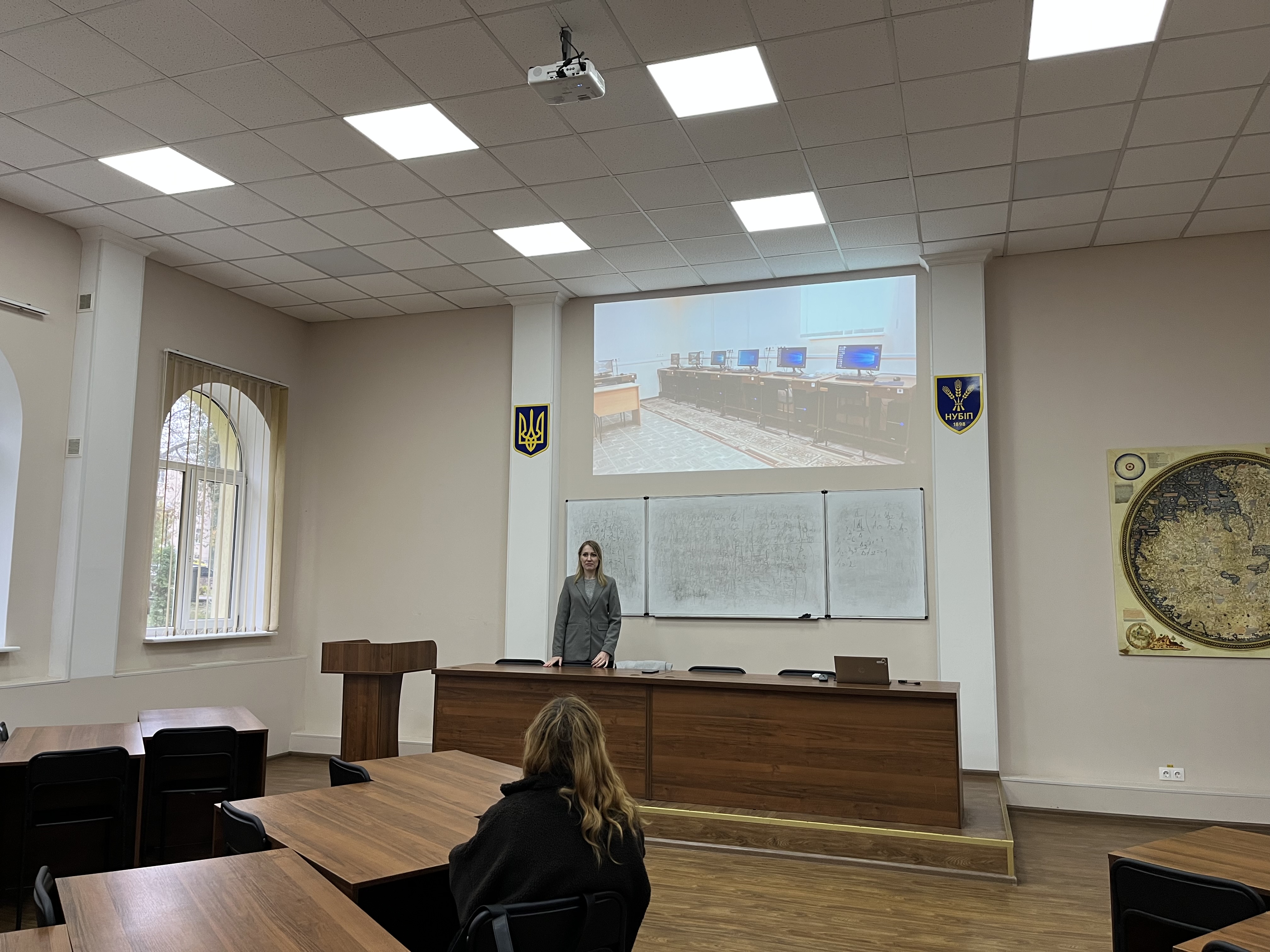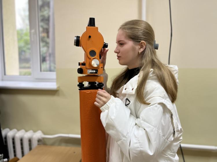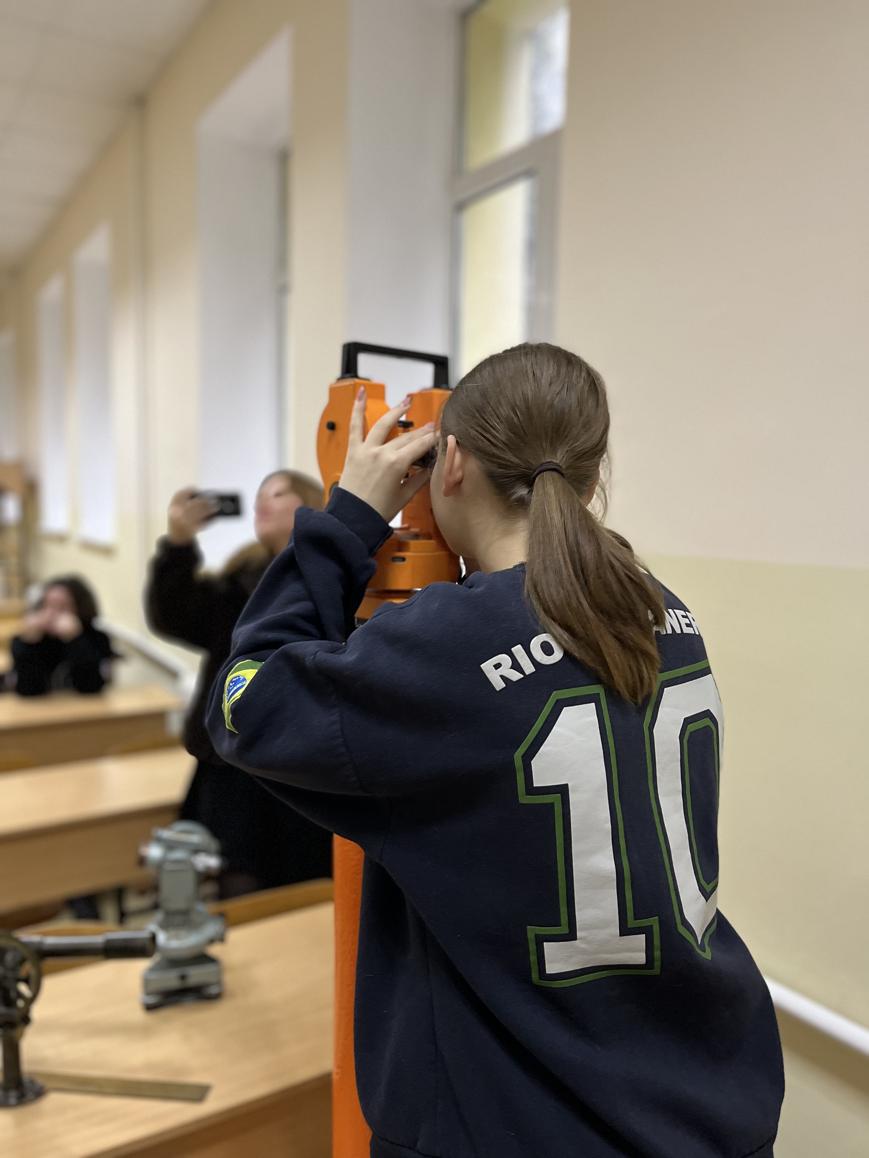 Гості оглянули матеріальну базу та взяли участь у інтерактивній лекції асистентки кафедри геодезії та картографії Яніни БОГДАН «Від теодоліта до GNSS». Учні познайомилися з сучасним геодезичним обладнанням, спробували себе в ролі геодезистів: навчились наводитись на точку за допомогою теодоліта та навіть змагалися у вправі «зняти кут на око».