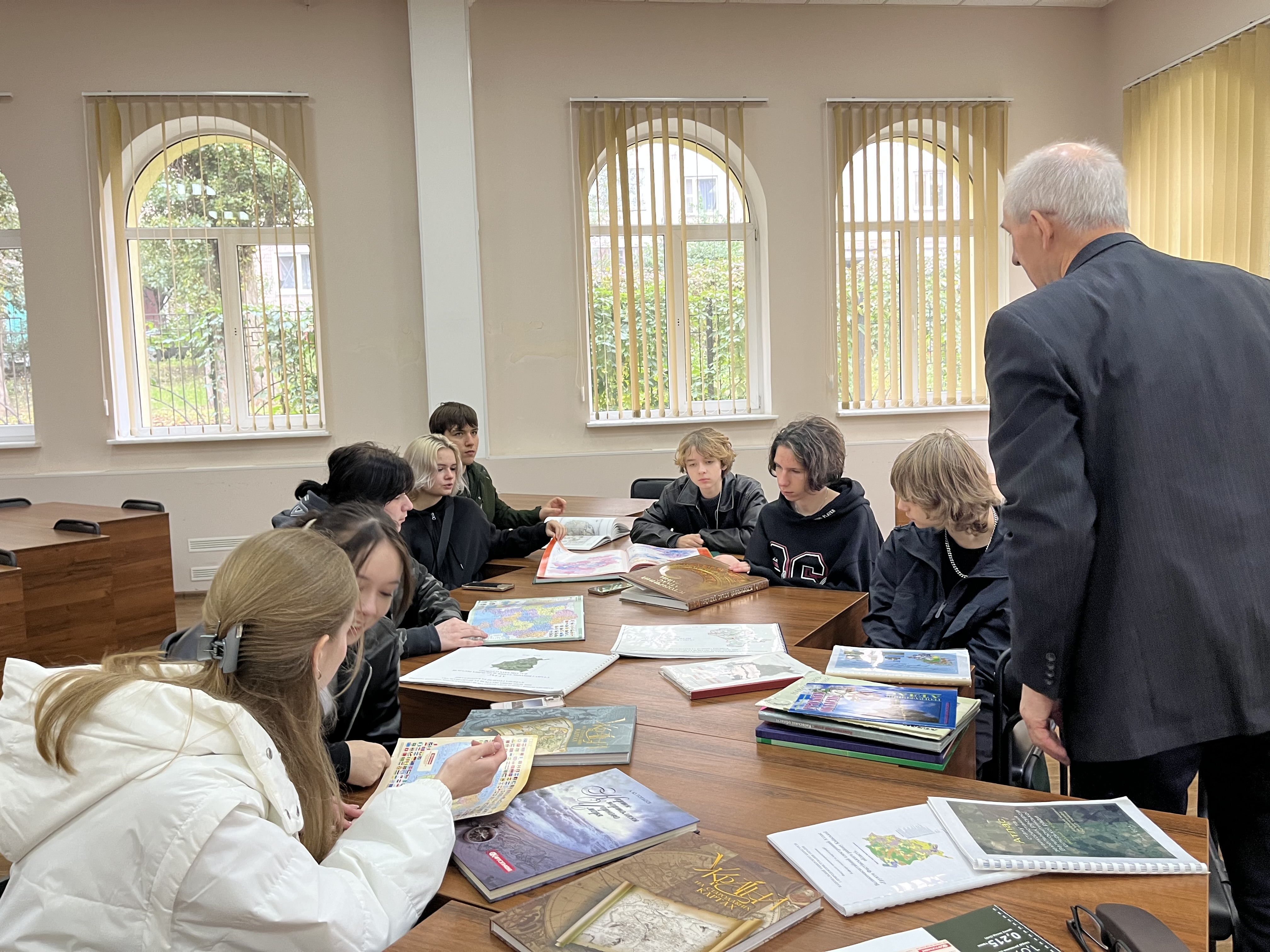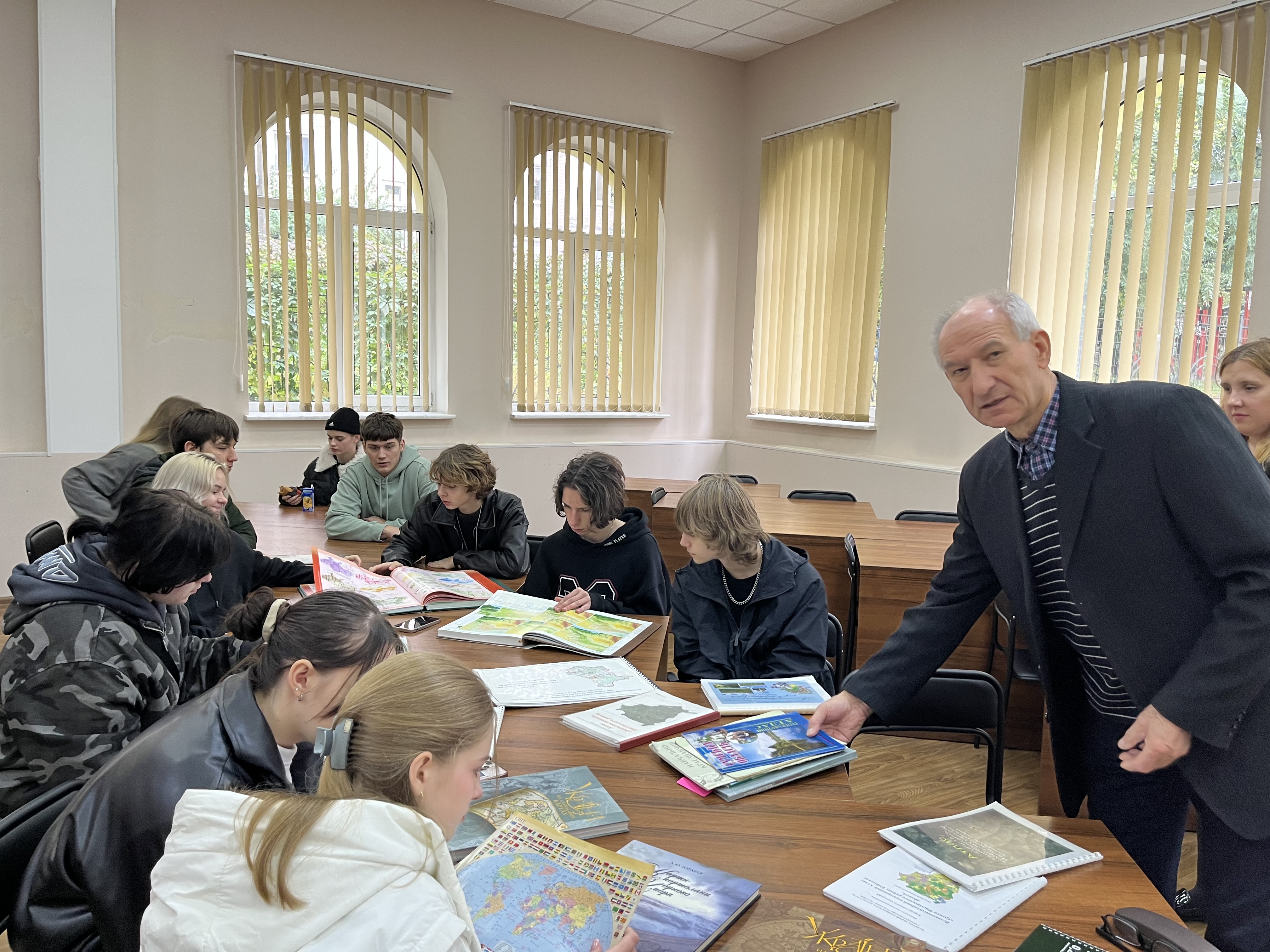 Після перерви школярі прослухали лекцію професора кафедри геодезії та картографії Івана КОВАЛЬЧУКА «Сучасна географія — її напрями, функції, суспільне значення, зв'язок із землевпорядкуванням і суміжними професіями». Іван Платонович показав різні карти й атласи та наголосив, що картографія є невід’ємною складовою землевпорядкування: саме вона забезпечує фахівців просторовими даними для аналізу територій, планування використання земель і створення кадастрових систем.