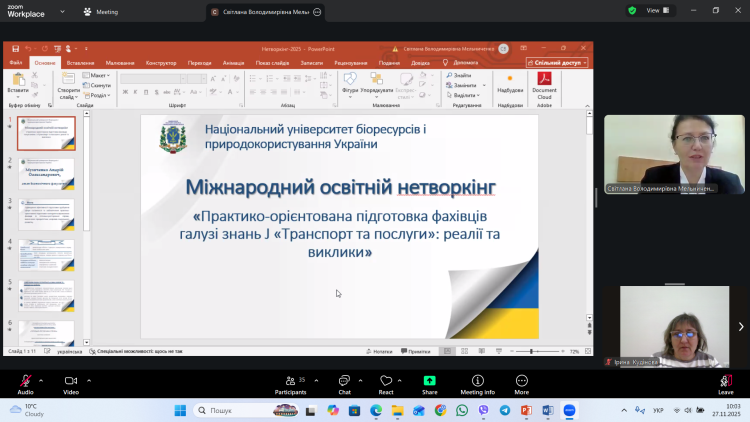 Кафедрою готельно-ресторанної справи та туризму економічного факультету Національного університету біоресурсів і природокористування України 27 листопада 2025 року в онлайн-форматі проведено Міжнародний освітній нетворкінг «Практико-орієнтована підготовка фахівців галузі знань J «Транспорт та послуги»: реалії та виклики». У роботі нетворкінгу брали участь понад 60 представників вітчизняної та іноземної академічної спільноти, бізнес-структур та здобувачів вищої освіти.