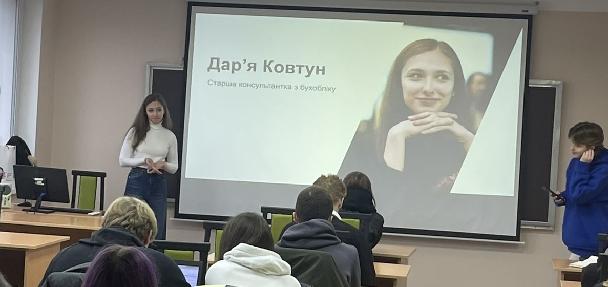 Основний зміст зустрічі був присвячений професійній лекції «Як приручити облік: просто про складне». Старша консультантка з бухгалтерського обліку Дар’я КОВТУН компанії Forvis Mazars в Україні доступно та ґрунтовно пояснила ключові аспекти обліку основних засобів, малоцінних необоротних матеріальних активів та нематеріальних активів відповідно до вимог НП(С)БО 7 «Основні засоби» і НП(С)БО 8 «Нематеріальні активи». Інтерес здобувачів викликали практичні кейси, у яких спікерка продемонструвала реальні бухгалтерські проведення щодо оприбуткування, введення в експлуатацію та продажу основних засобів.