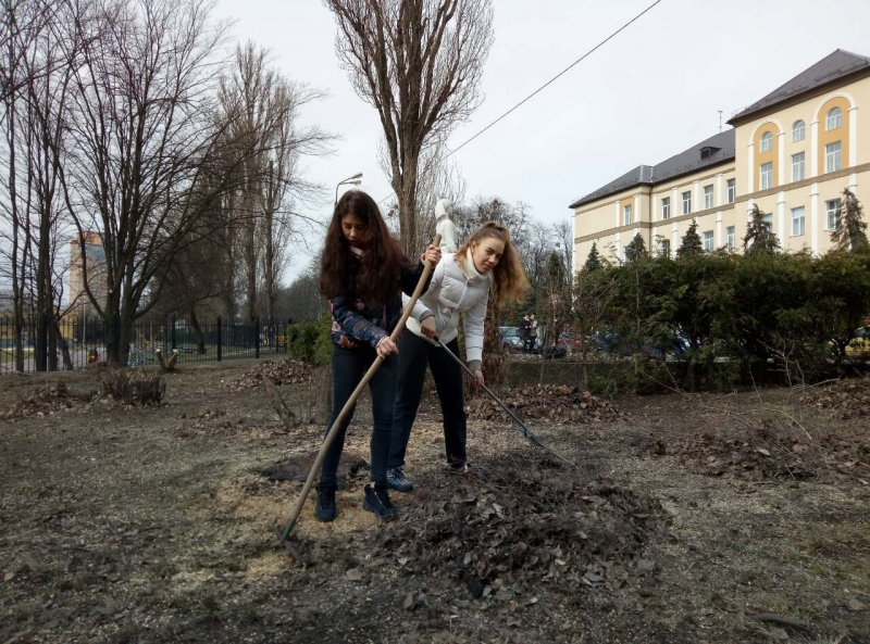 Погожий березневий день, свіже повітря та веселий настрій супроводжували студентів і надихали на плідну працю. Без сумніву, така спільна трудова діяльність сприяє згуртованості студентського колективу, вносить різноманіття у буденне життя та дозволяє краще пізнати один одного.