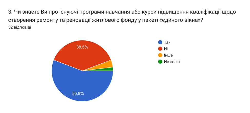 More than half of the respondents (55.8 %) expressed awareness of training programs for the repair and renovation of housing stock.